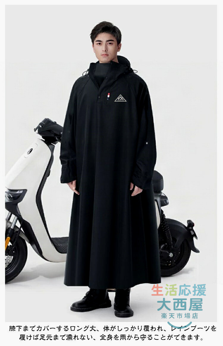 梅雨対策 原付ポンチョ メンズ 自転車 レインコート ロング 防水 防風 軽量 リュック対応 通学通勤 男女兼用