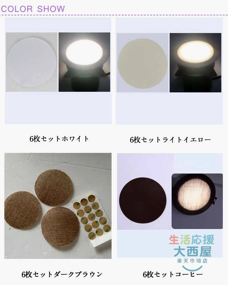 ダウンライト 拡散カバー 減光フィルム 6枚セットホワイト 6枚セットライトイエロー 6枚セットダークブラウン 6枚セットコーヒー 直径5cm 直径6cm 直径7cm 直径8cm 直径9cm 直径10cm 直径12cm 直径14cm 直径16cm 直径18cm
