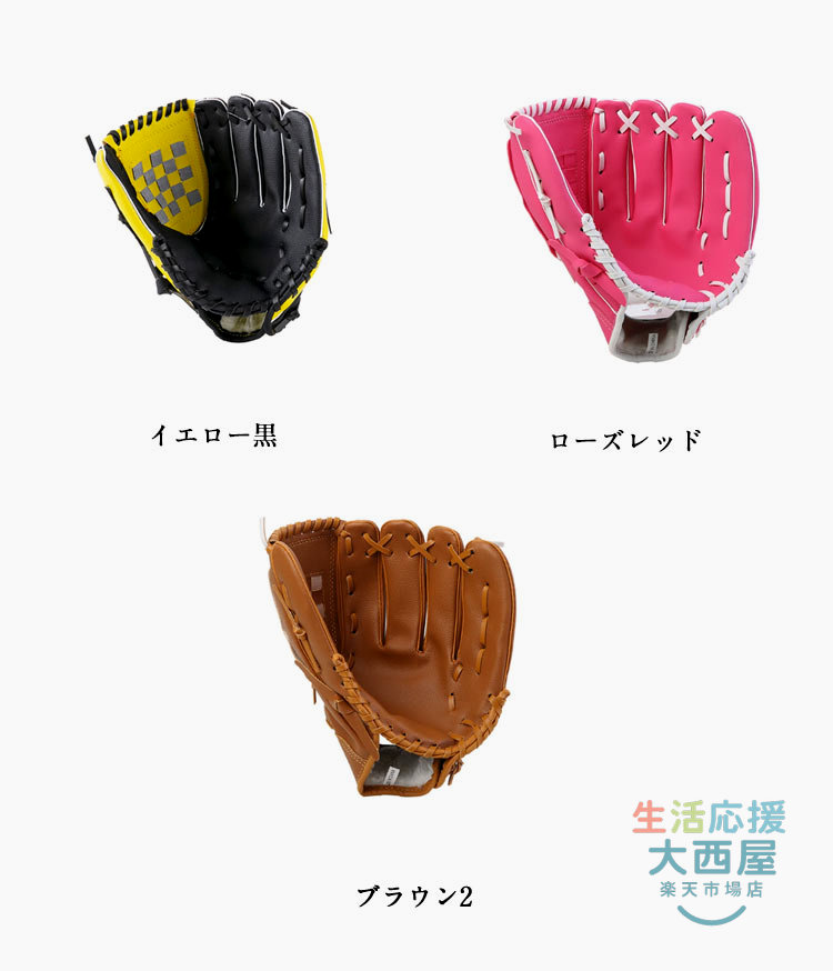 ジュニア用 野球グローブ 柔らかグロー スポーツ アウトドア 超目玉商品 ブルー ブラック ブラウン黒 ブラウン1 ブルー黒 レッドブルー イエロー黒 ローズレッド ブラウン2 10.5インチ(子供用) 11.5インチ(ジュニア用) 12.5インチ(大人用)