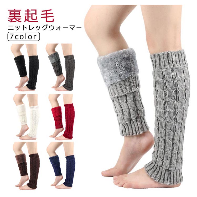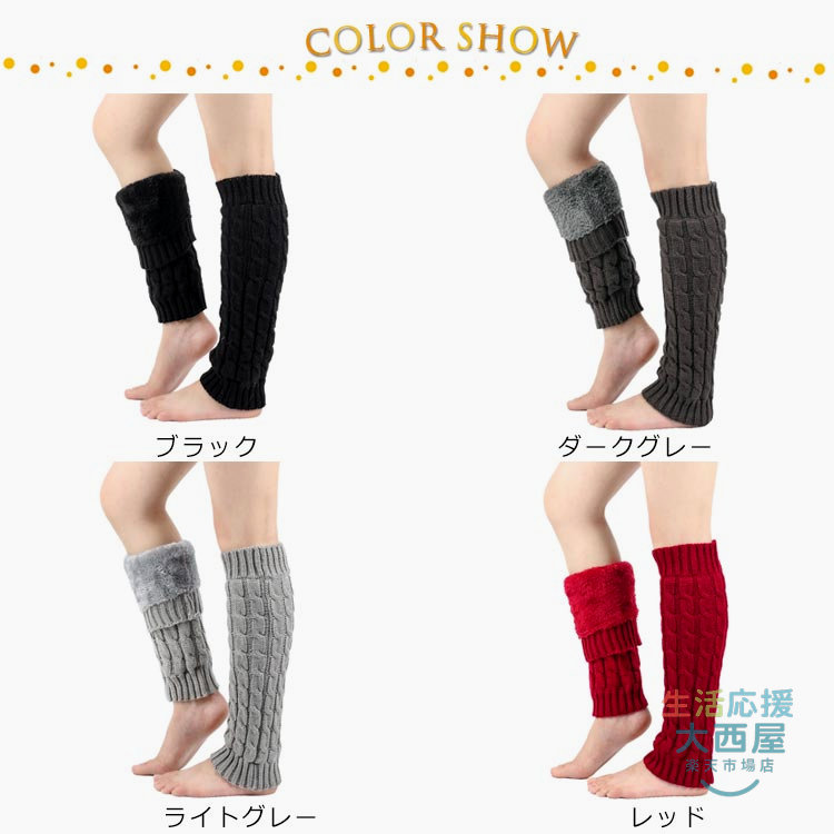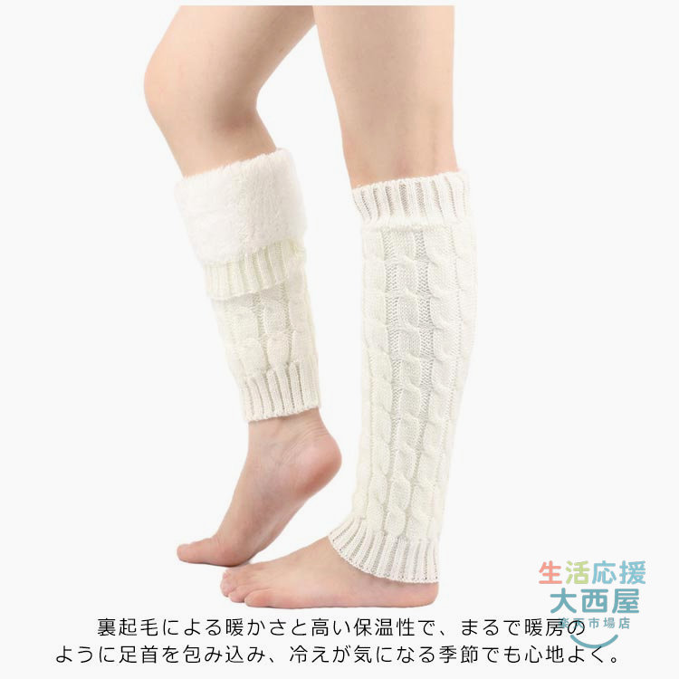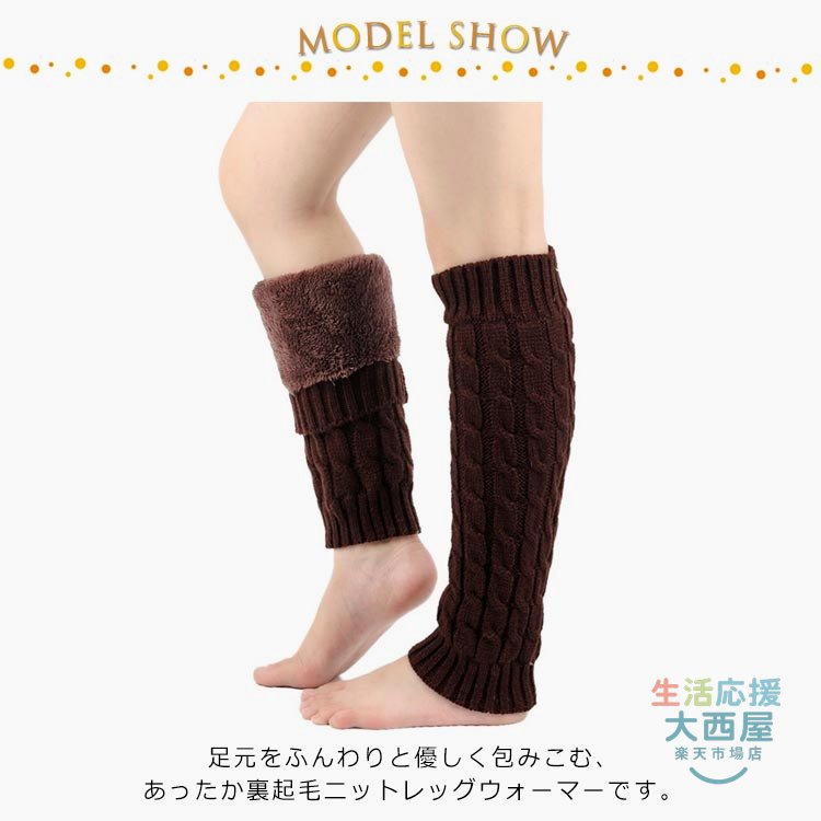 厚手ニット ケーブル編み 裏起毛 レッ レディース 靴下 レッグウェア レッグウォーマー 豊富 ブラック ダークグレー ライトグレー レッド コーヒー ネイビー ホワイト
