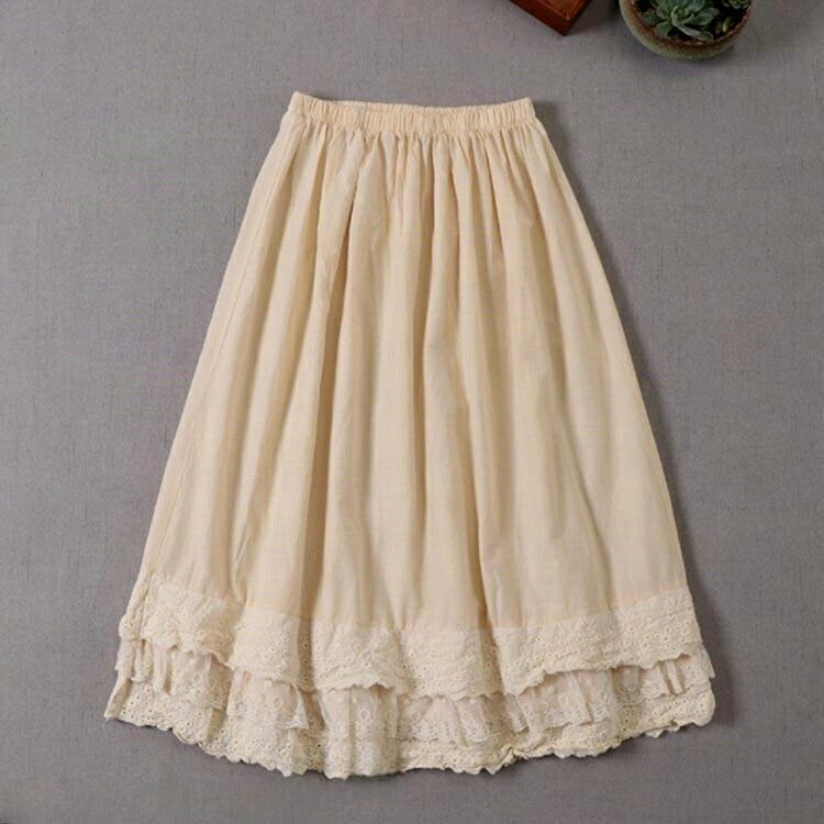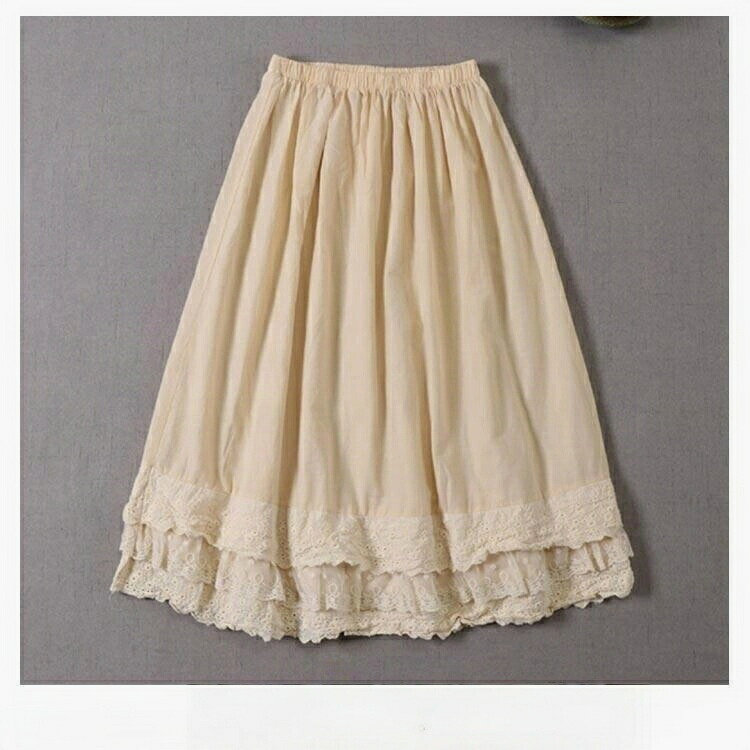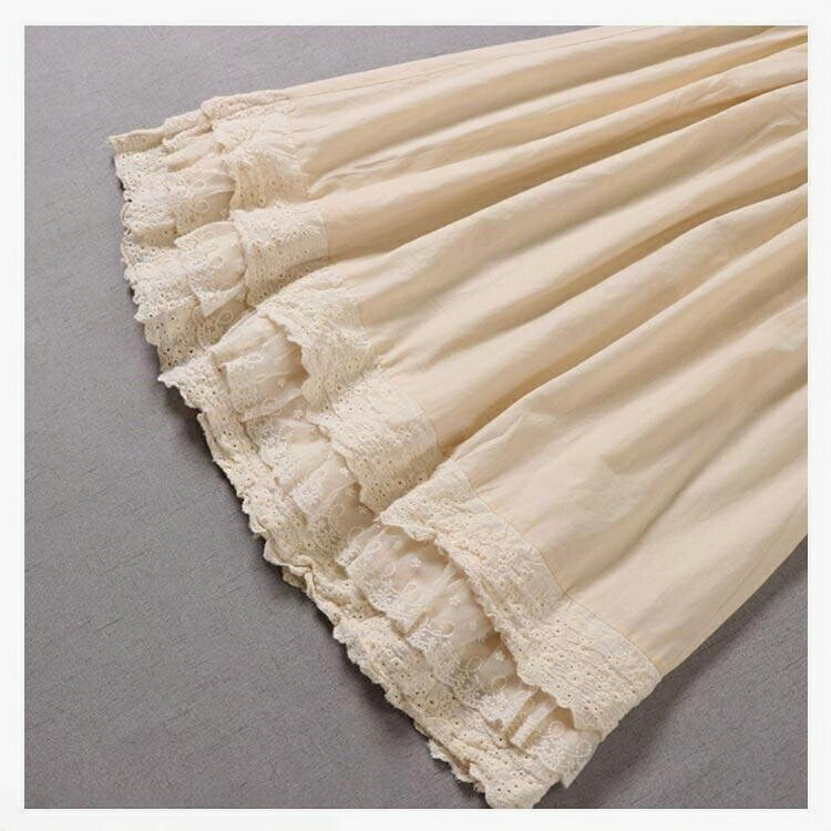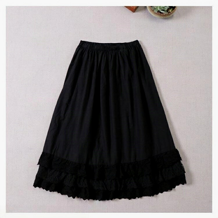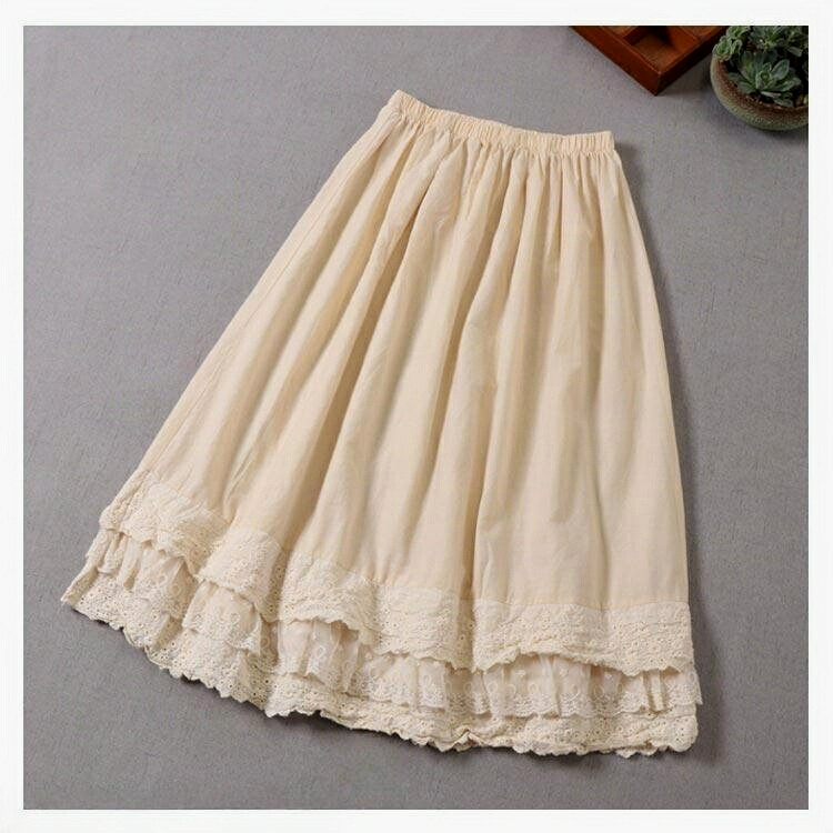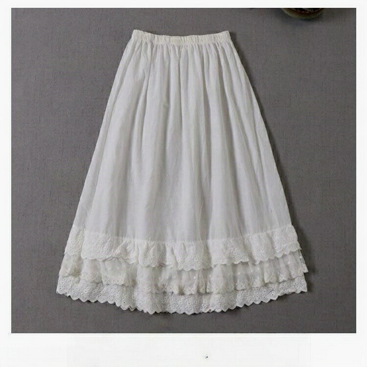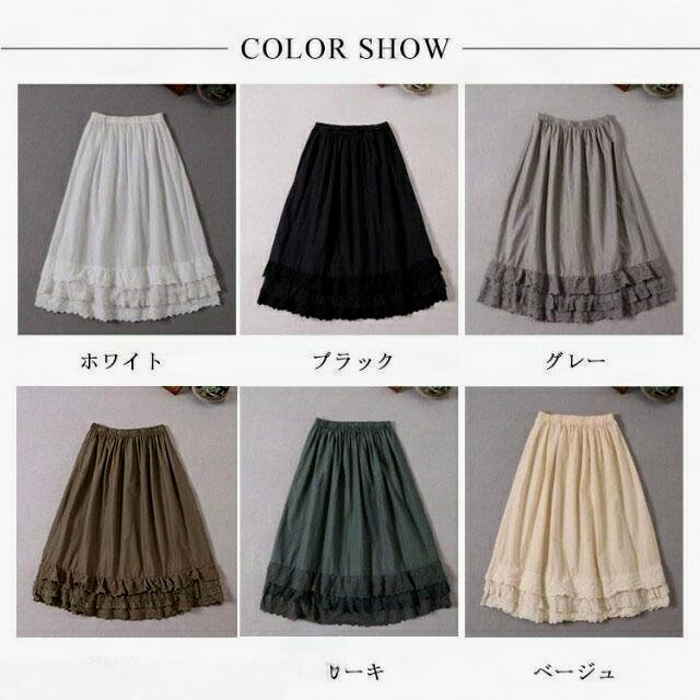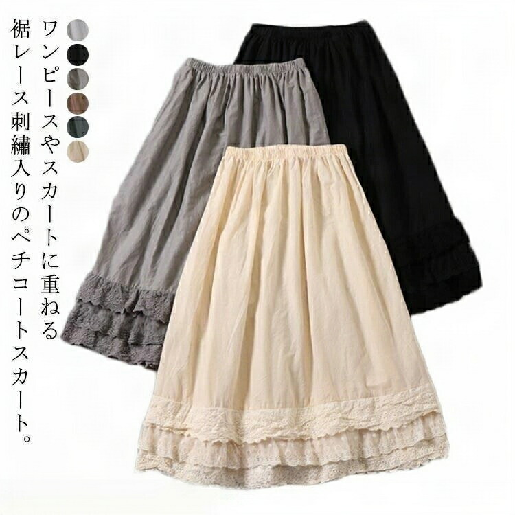 スカート レース 重ね着 レイヤード ペチコート 体型カバー ストレッチ 暖かい ロング 刺繍 綿100% 透け防止 白 大きいサイズ レディース アンダースカート