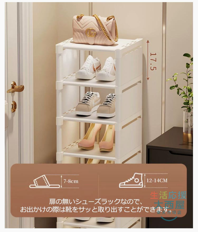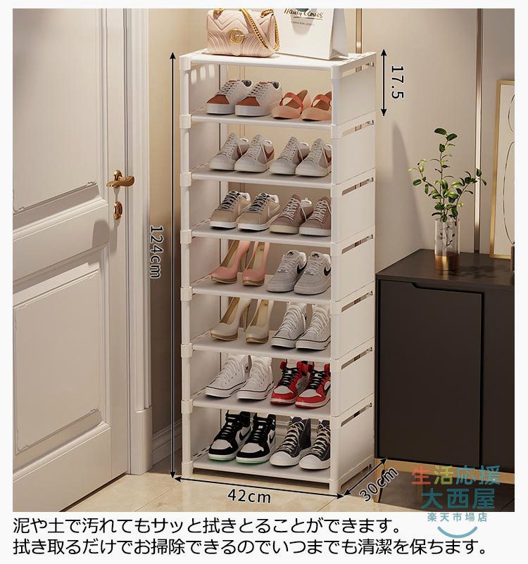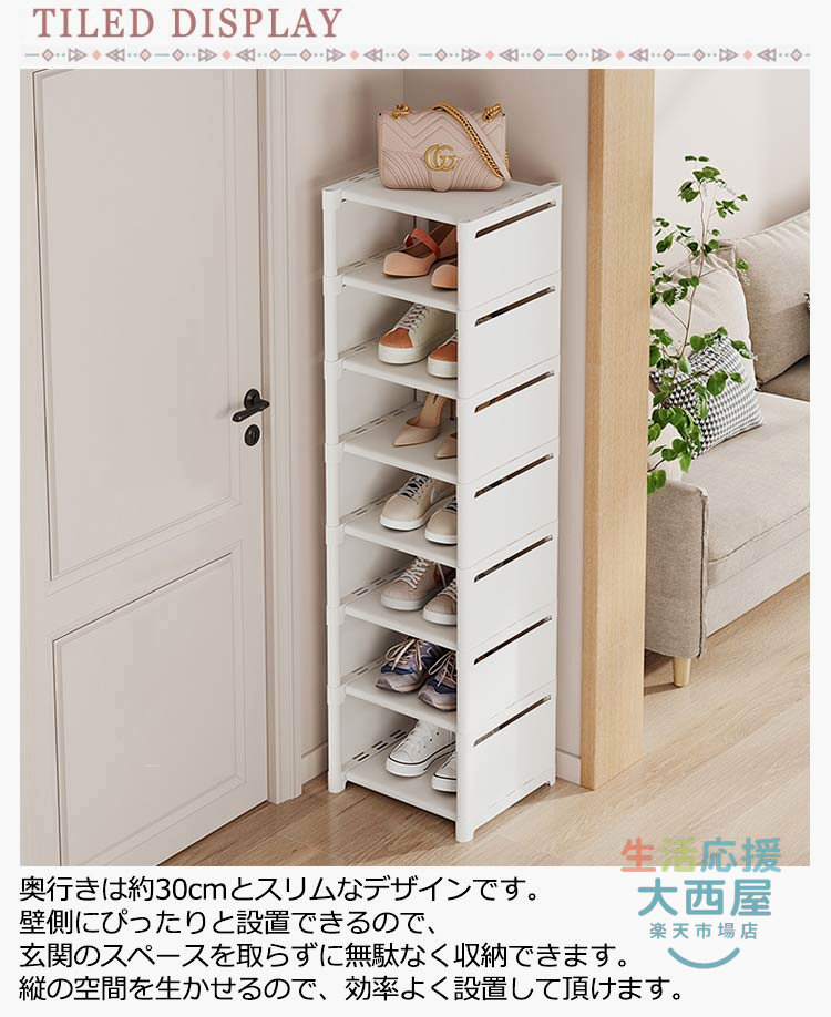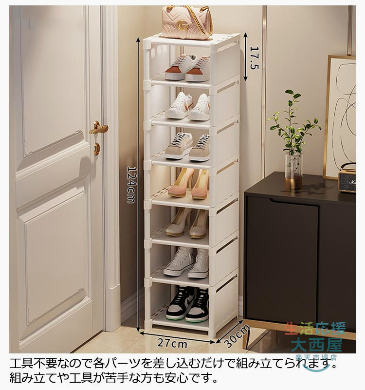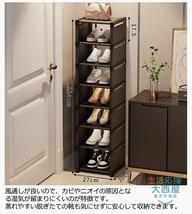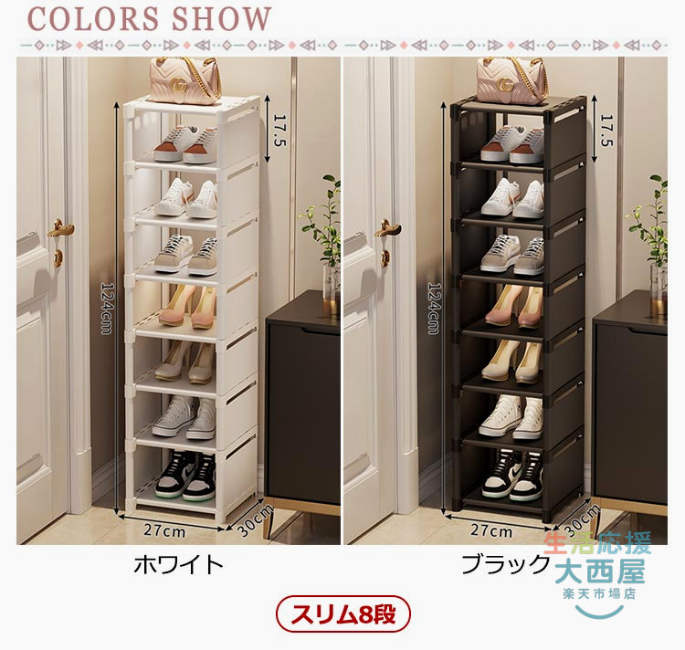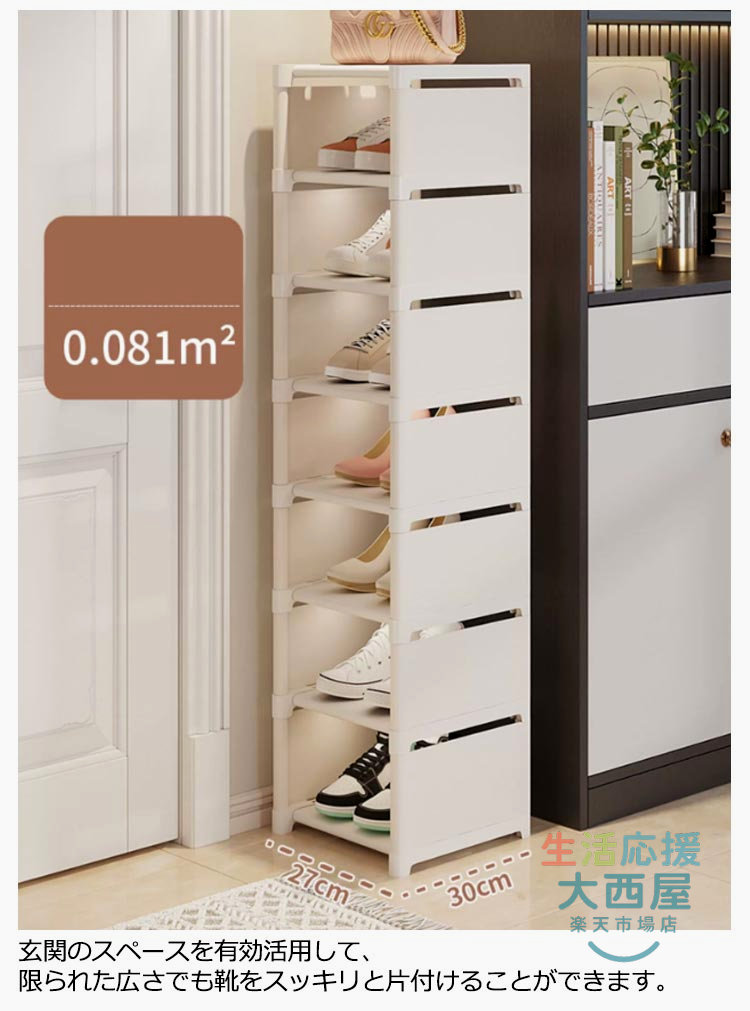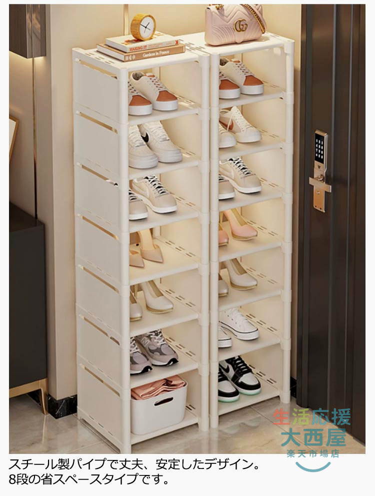スリム下駄箱 大容量収納 8段玄関省スペース 隙間家具玄関収納 シューズラック コンパクト靴収納ラック