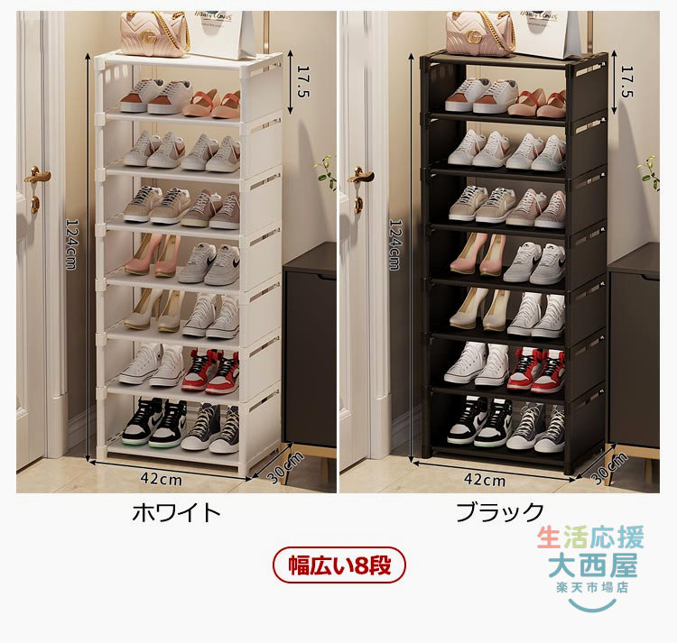 スリム下駄箱 大容量収納 8段玄関省ス ホワイト ブラック スリム8段 幅広い8段