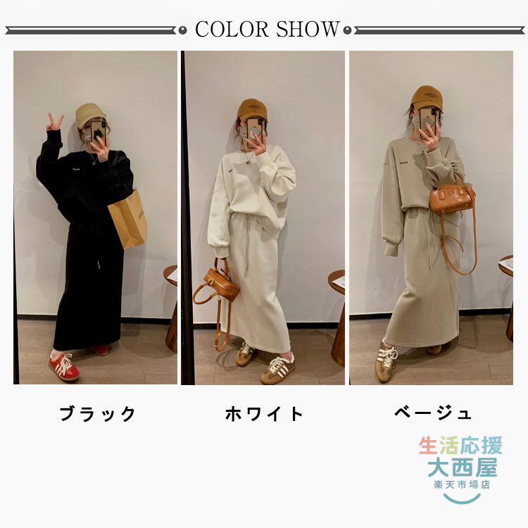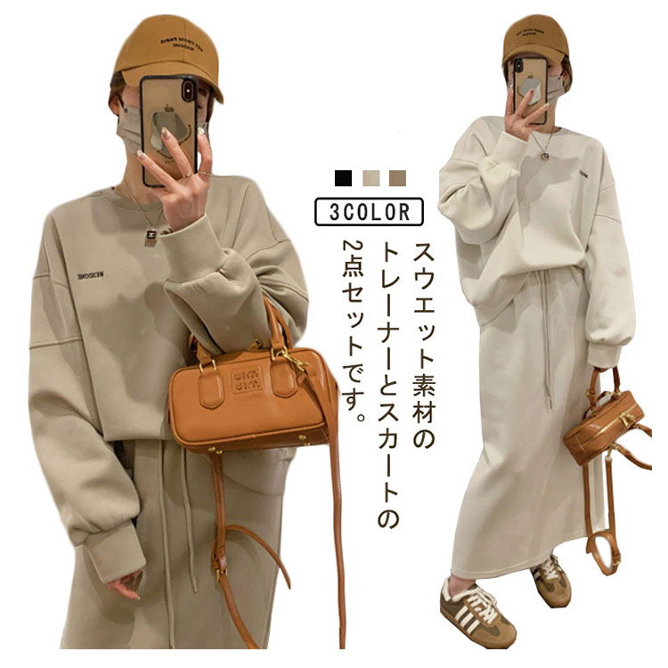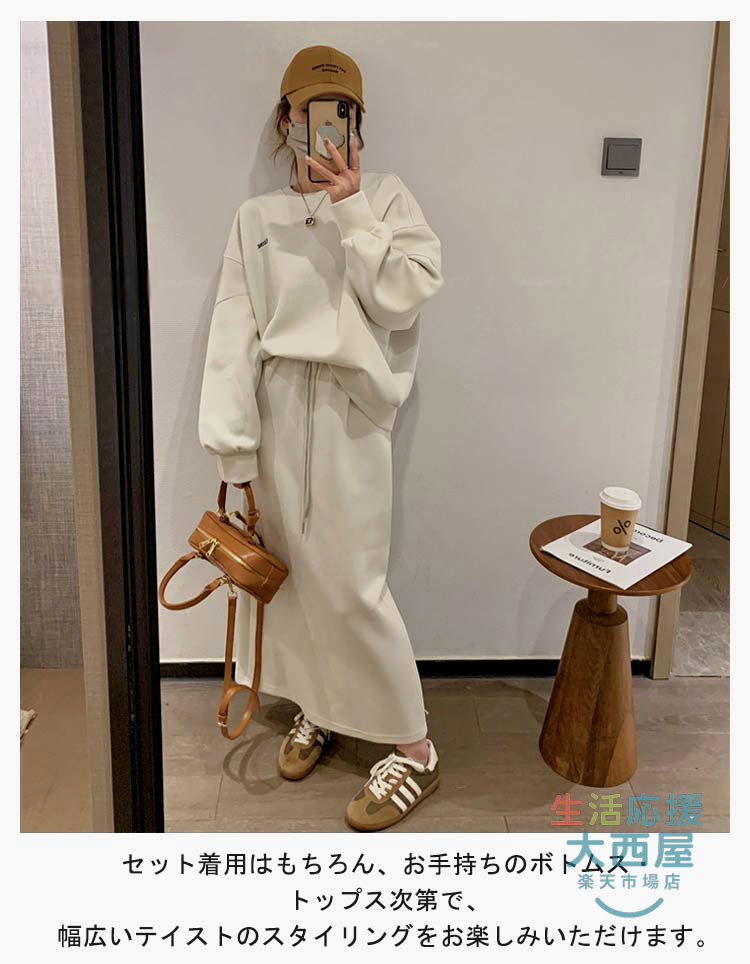 トレーナー パーカー レディース 長袖 スーツ セットアップ スカートスーツ 豊富 ベージュ ホワイト ブラック M L XL 2XL