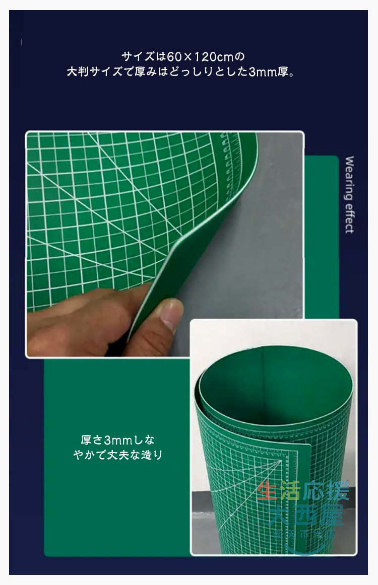 カッティングマット 特大 60×120cm 洋裁 手芸 業務用 工作 カッターマット 大判 工作マット カッター板 下敷き デスクマット 両面 3mm 造形 裁縫 型紙 作業台 緑 グリー 切り出し
