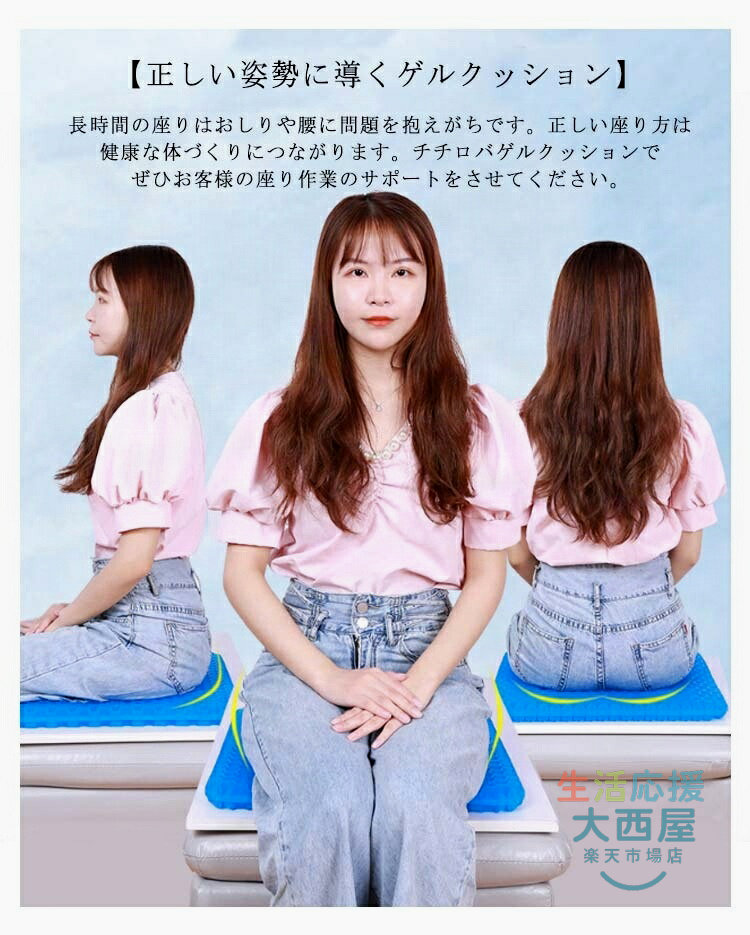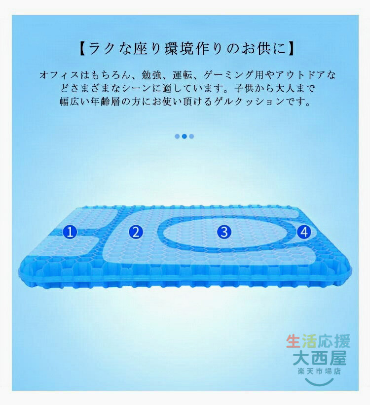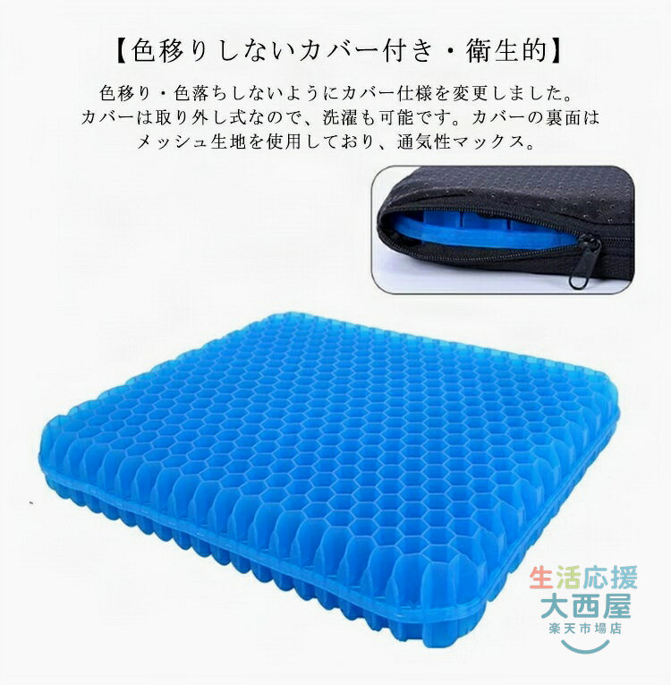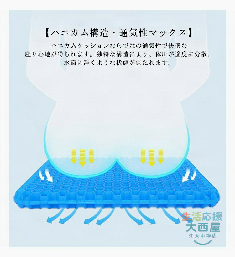 ゲルクッション 二重 ジェルクッション 超特大 50cm×50cm 座布団 椅子用クッション 極厚 無重力 ハニカム構造 通気性 骨盤矯正