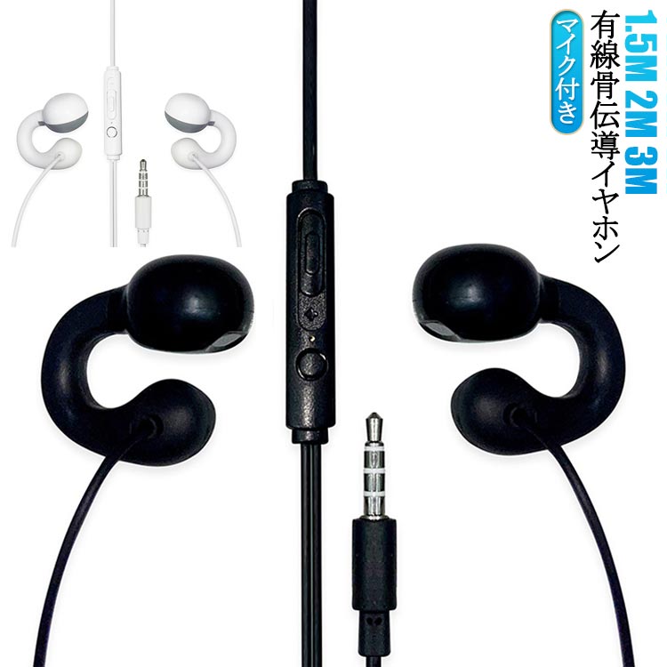 【有線骨伝導イヤホン】【マイク付き】【1.5m 2m 3m】