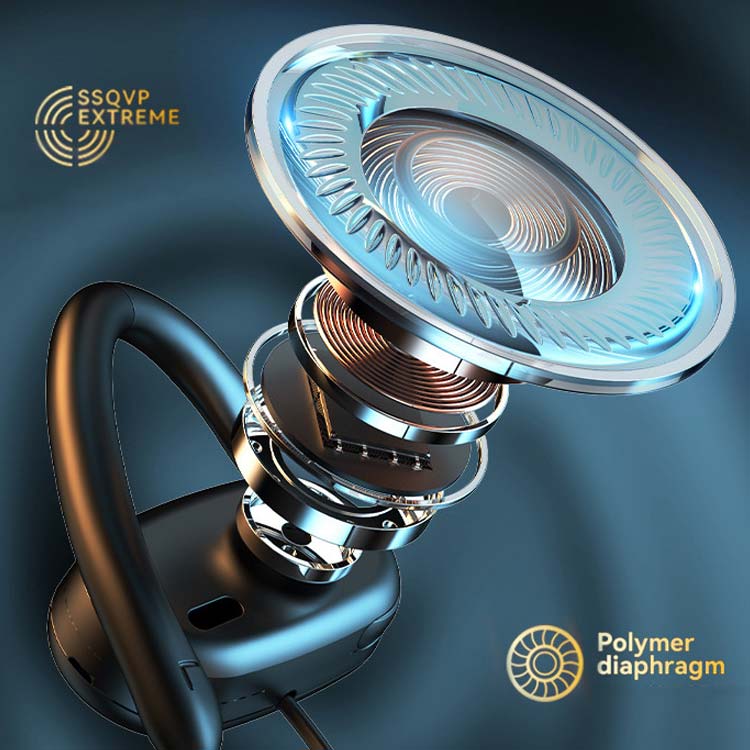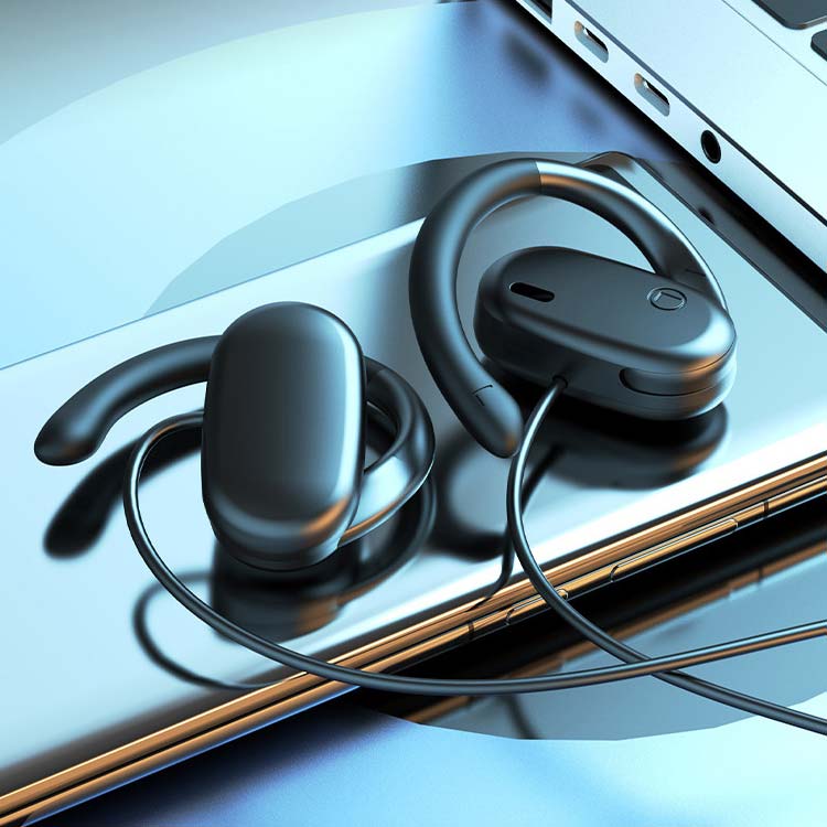 【耳掛け式】両耳合わせて28gの超軽量タイプで、長時間装着しても耳への負担が少なく、付けるのを感じられないほどの軽さです。また、耳の形にピッタリフィットする耳掛け式で、激しい運動中も落下の心配もありません。