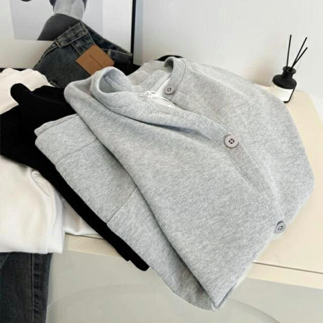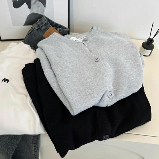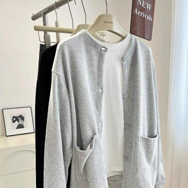 春秋のおしゃれにぴったりなスウェットカーディガン。さっと羽織れてデイリーの着回しに重宝するライトアウター。