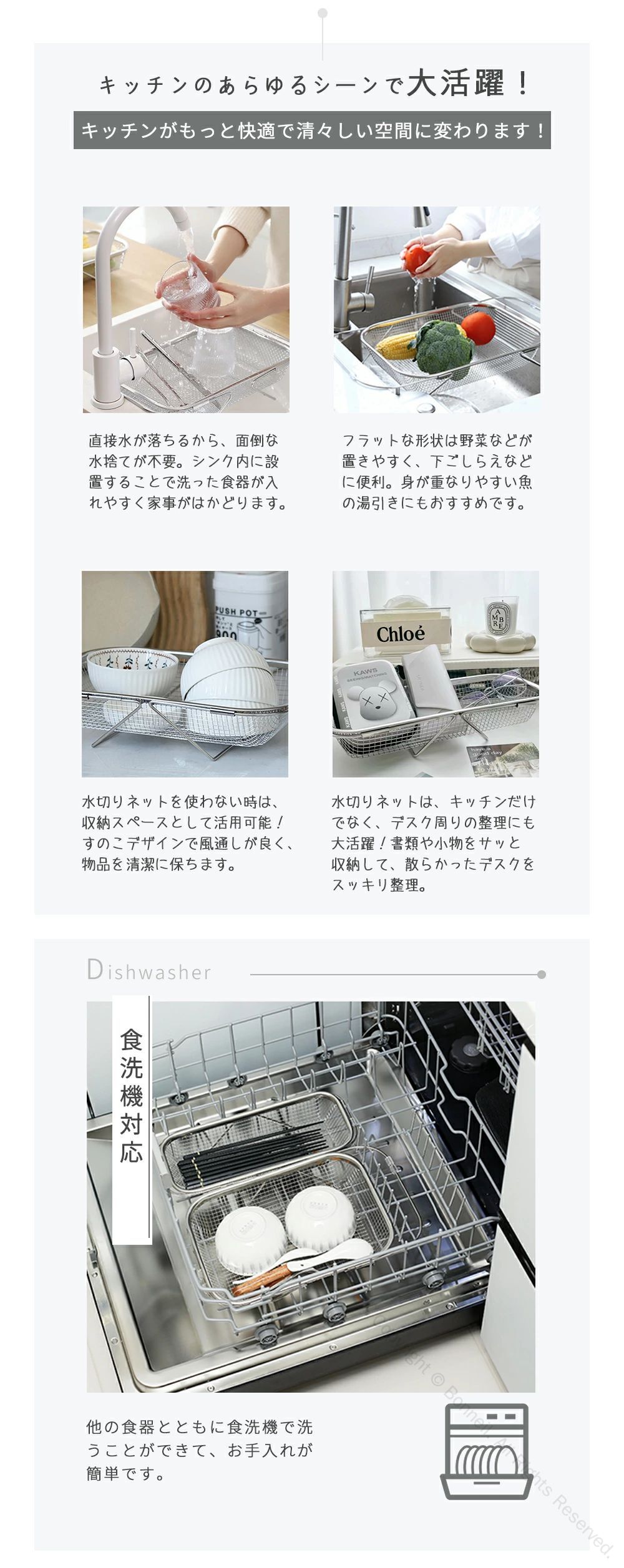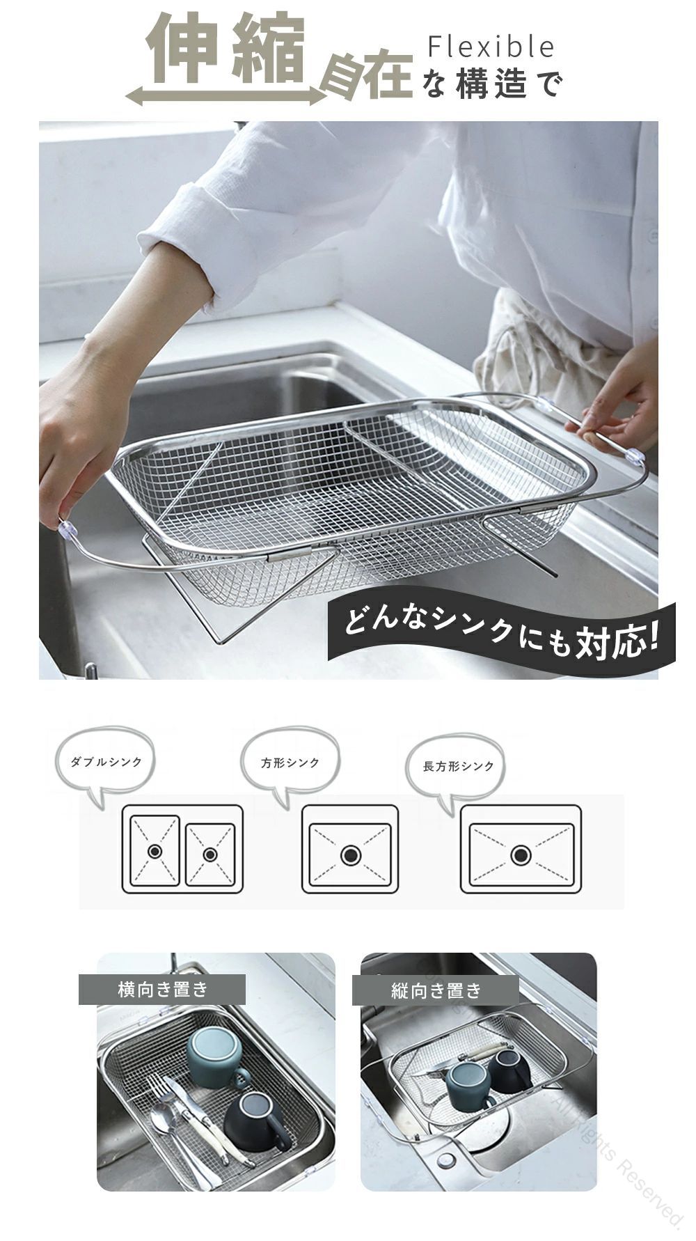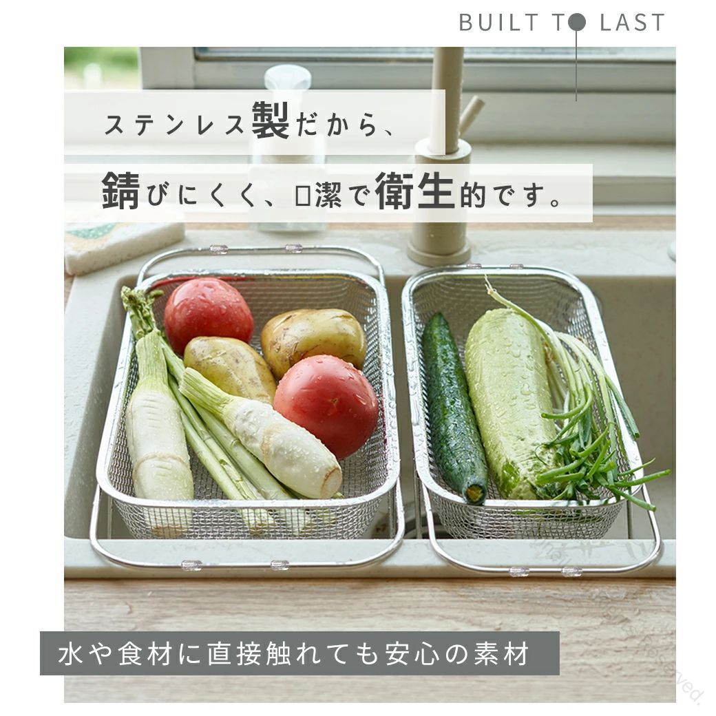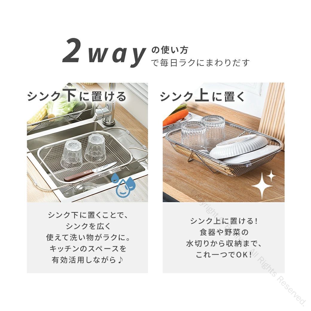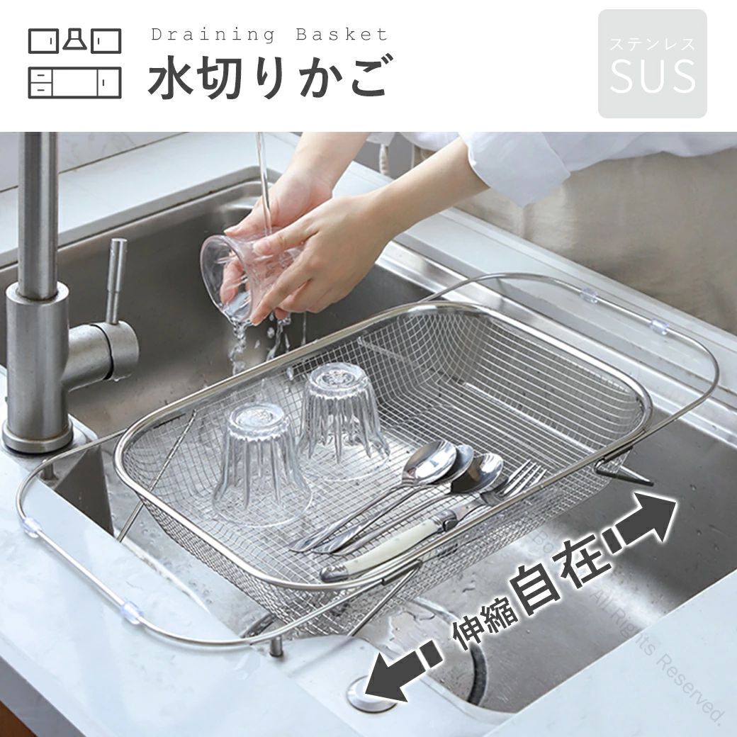 水切りかご ステンレス 伸縮水切りラック シンク上 横置き 縦置き対応 大容量 食洗機対応 ラック 水が流れる設計 キッチン収納用品 水切りカゴ