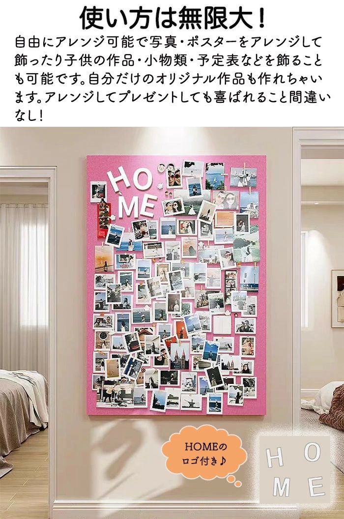 商品名:フェルトボード 壁掛け 写真 穴不要 サイズオーダー可能 DIYボード 掲示板 多機能 写真壁 案内板 フォトフレーム フェルト製 ウェルカムボード ハリペタ 壁貼りフォトフレーム ウェルカムボード 伝言板 ポスター 画鋲付 写真立て スケジュールボード