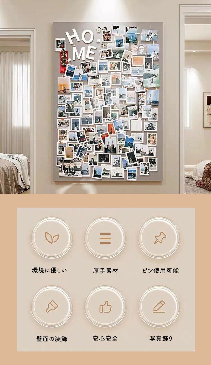 検索関連キーワード(商品の説明ではありません):フェルトボード 壁掛け 写真 穴不要 サイズオーダー可能 DIYボード 掲示板 多機能 写真壁 案内板 フォトフレーム フェルト製 ウェルカムボード ハリペタ 壁貼りフォトフレーム ウェルカムボード 伝言板 ポスター 画鋲付 写真立て スケジュールボード