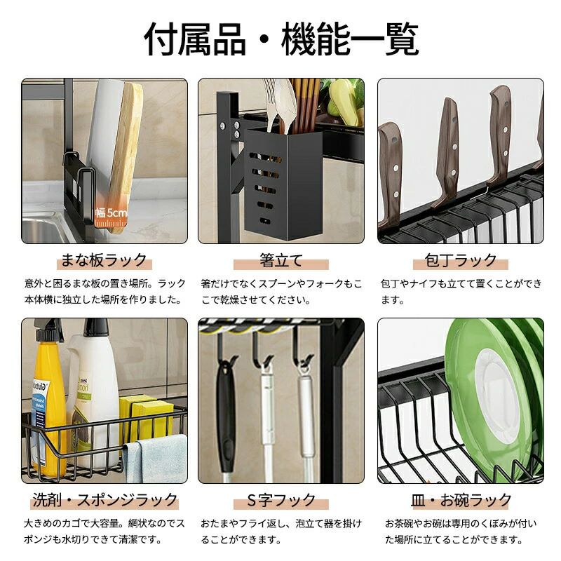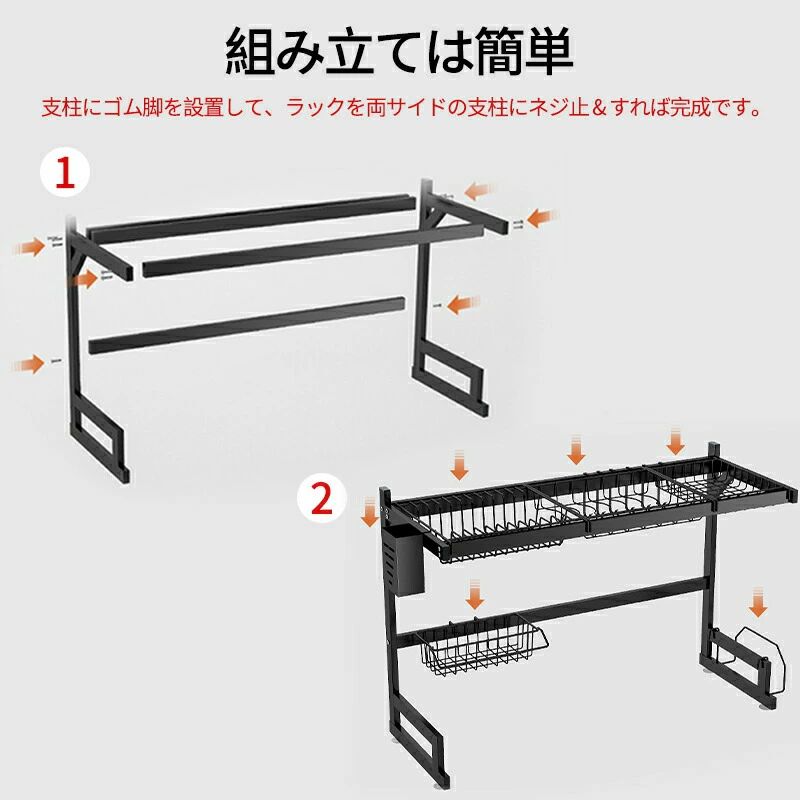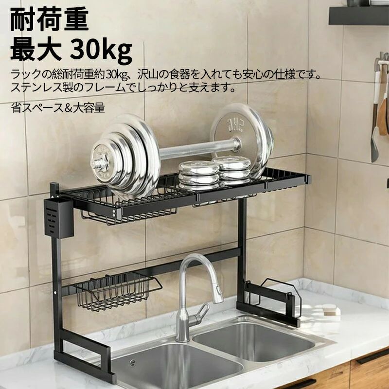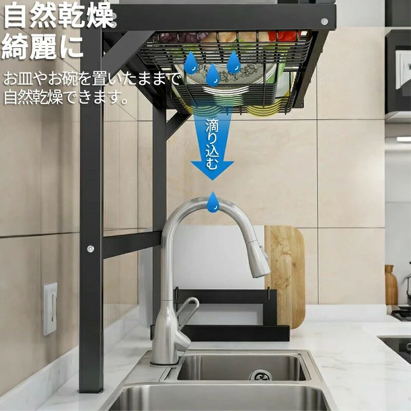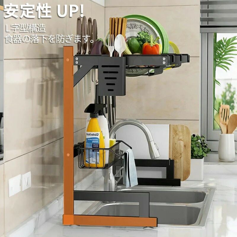 シンク上水切りラック スナップオンデザイン 大型キッチンディッシュラック 拡張可能な寸法 水切りラック シンク上 ステンレススチール カウンターの整理と収納 2段
