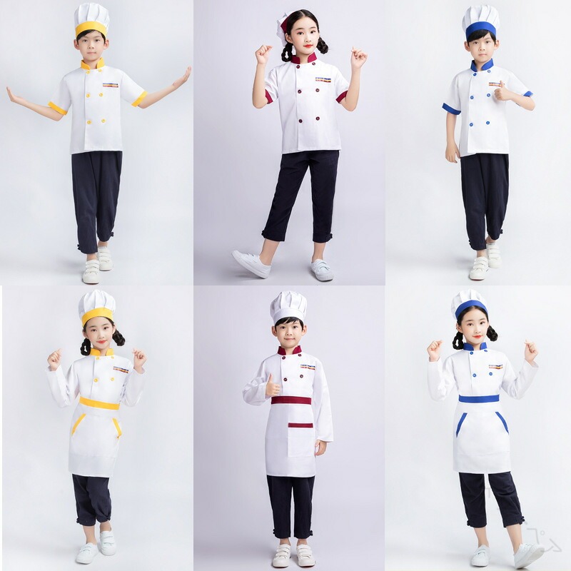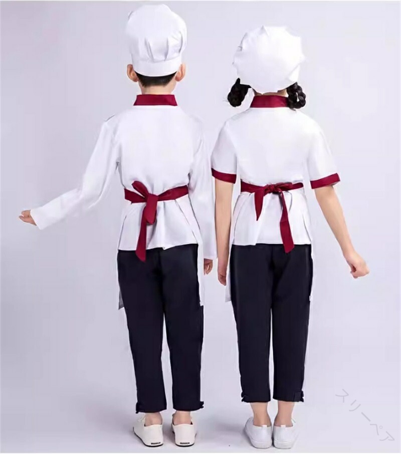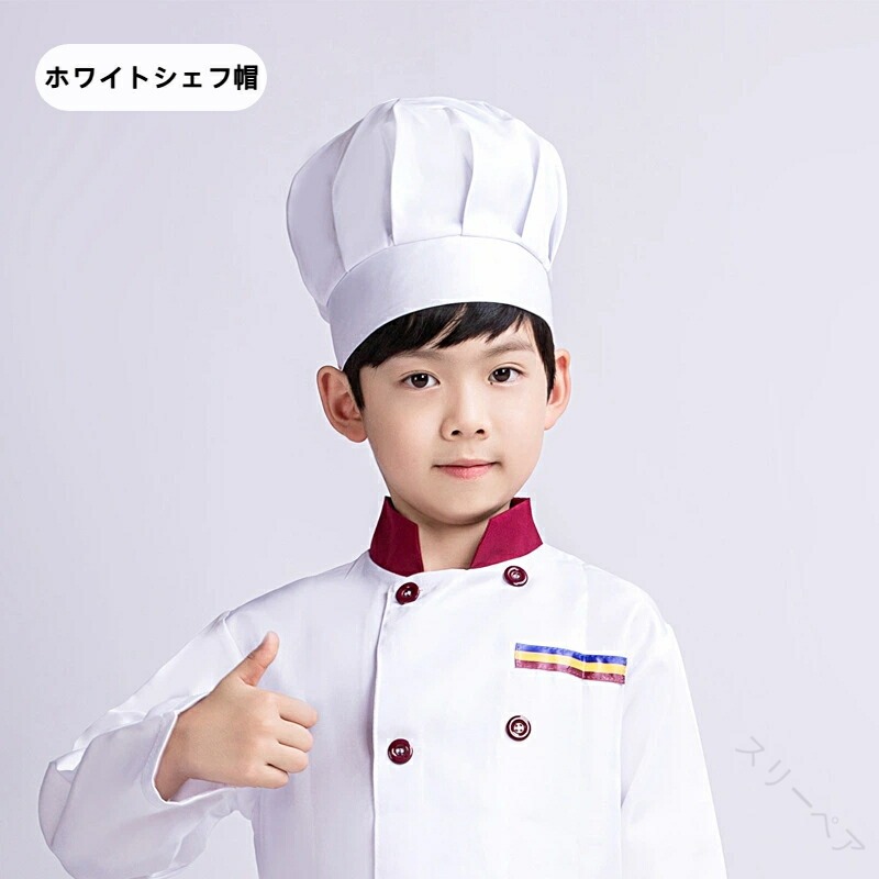 キッズシェフ体験 夢の厨房コスチューム コスプレ 変装 仮装 コスチューム一式 続々登場 シェフ帽(単品) 半袖セット 長袖セット ホワイト ブルー イエロー レッド