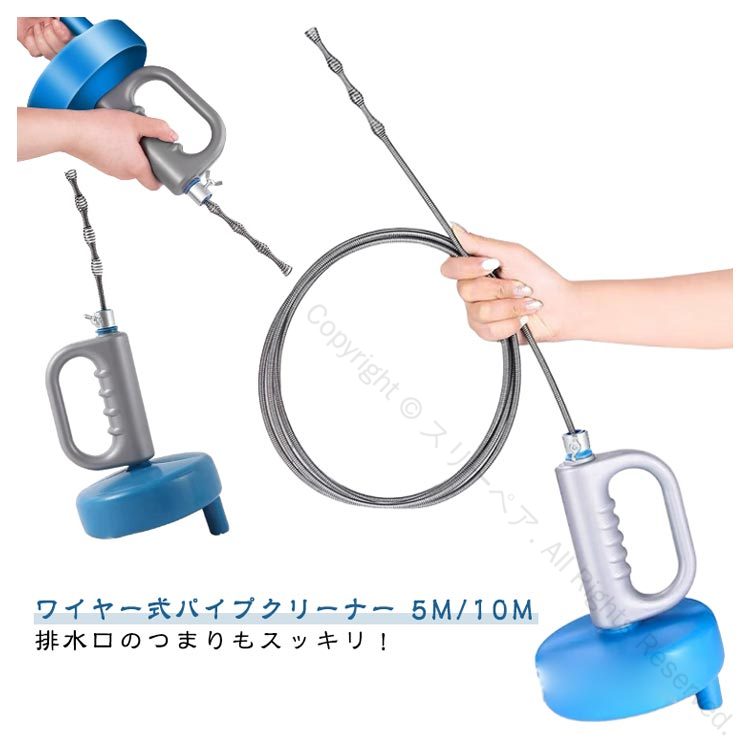 洗浄 掃除 パイプ詰まり 排水溝 詰まり ワイヤー 排水管 台所用10m トイレ風呂用5m パイプクリーナー 下水管 配管 つまり 回転式 詰まり解消 家庭用便利工具 解消