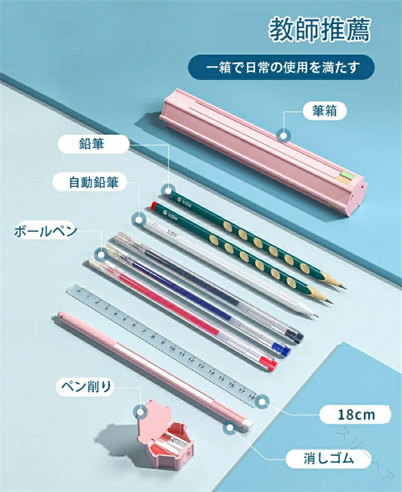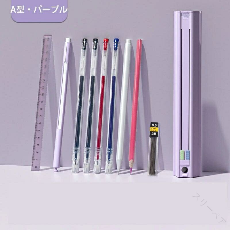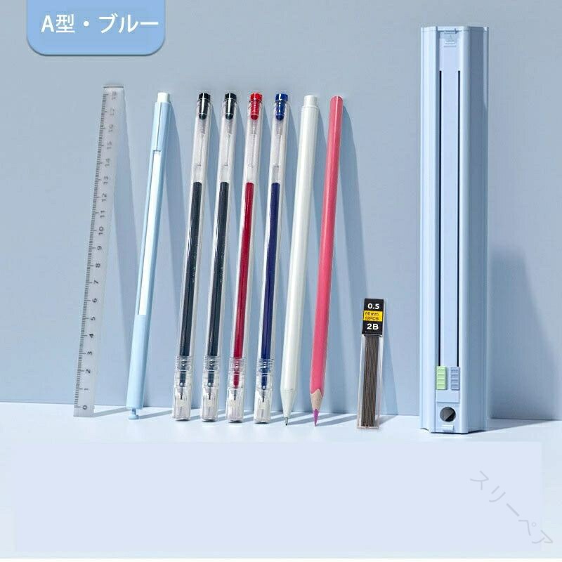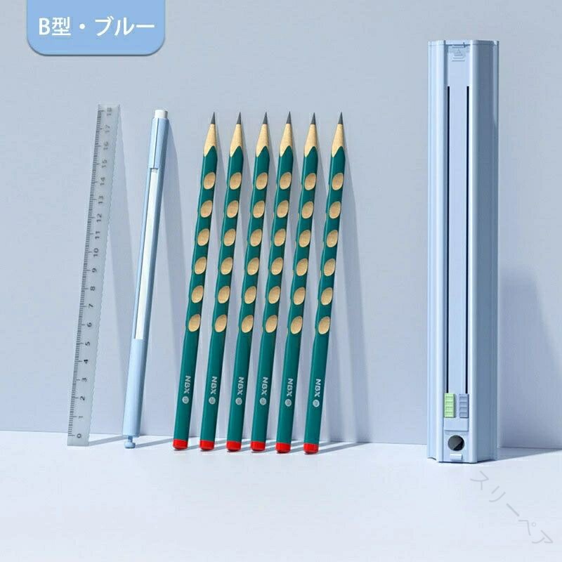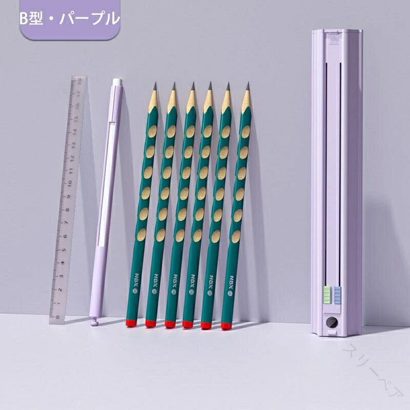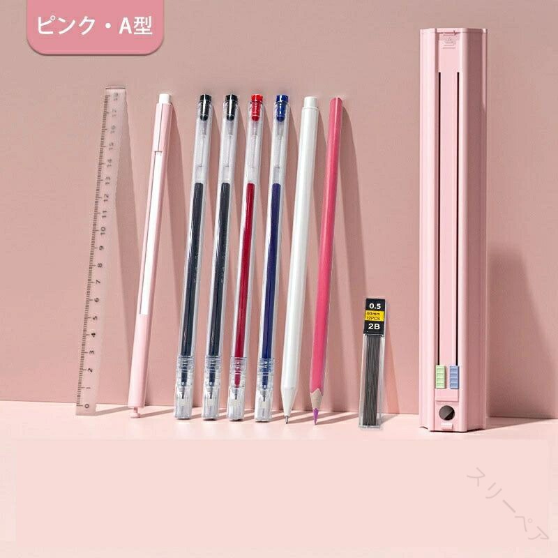 ペンケース 筆箱 スライド式 六角形 文具セット 筆6本 消しゴム 定規 鉛筆削り付き 文房具入れ 文具入れ コンパクト 軽量 取り出しやすい 整理 整頓 芯折れにくい 学生 社会人向け おしゃ 収納