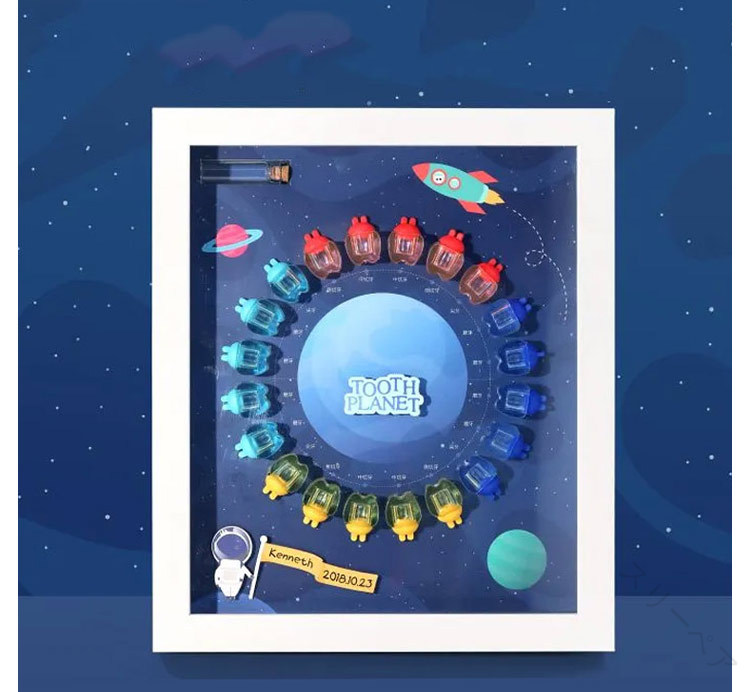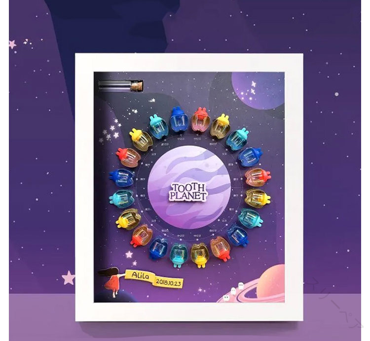 お子さまの乳歯や産毛を、まるで“宝物”のように大切に保管できるメモリアルボックス。観覧車や天体モチーフが描かれたデザイで、成長の軌跡を美しく記録します。壁掛け&デスクッ両用で、飾って楽しめるフォフーム式で中身が見えるから、イテリアとしても可愛く演出。壁に掛けても、机や棚に立てかけても使える2WAY仕様です。乳歯も産毛もこれひとつで保管抜けた歯を並べてディスイ!20本の歯を保管できる「乳歯ケース」。乳歯ケースに歯を入れ、キャッをON。歯の種類は付属のシールを貼りひと目で確認。また産毛ボルも一緒に収納可能。成長の思い出をひとつにまとめて、いつでも見返せる家族の宝箱に。にもおすすめ出産祝いやお誕生日祝いに喜ばれる、特別な記念アイテム。男女問わず使えるデザイで、お子さまの成長を永遠に残せます。