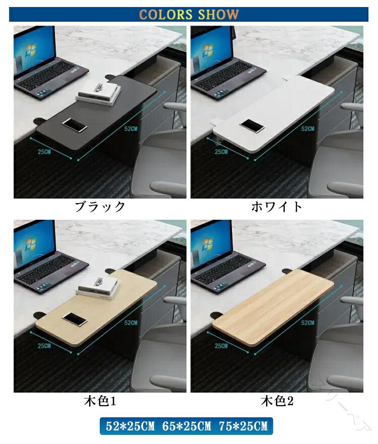1. マウス収納 拡張テーブル デスク 52*25cm 65*25cm 75*25cm ブラック ホワイト 木色1 木色2