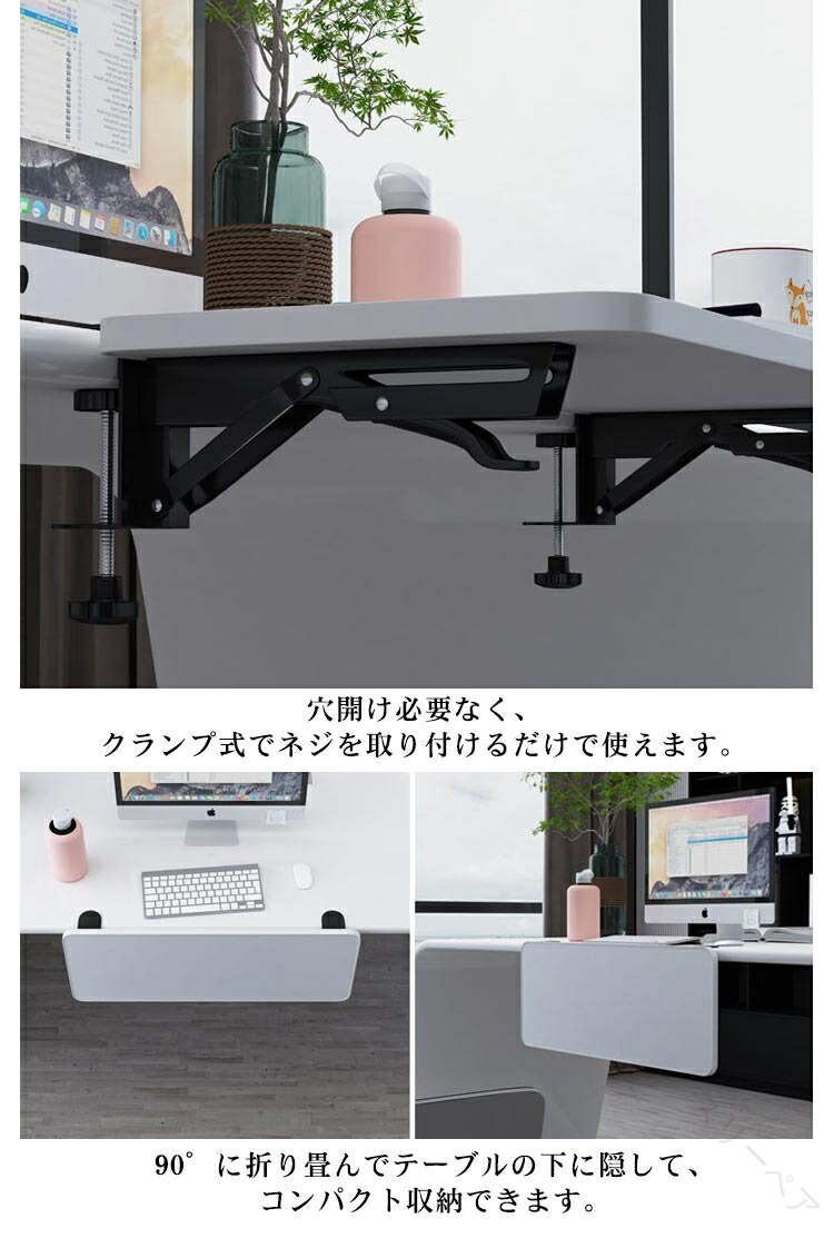 1. マウス収納 拡張テーブル デスク延長板 クランプ式 2. PCテーブル 折りたたみ式 キーーボードトレイ 人間工学 3. デスク延長 肘置き台 デスクエクステンダー 4. 拡張トレイ 疲れ軽減