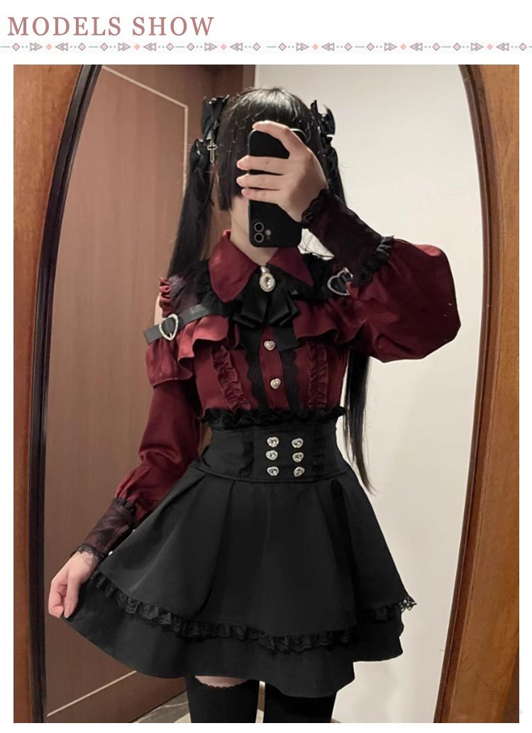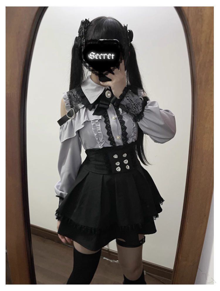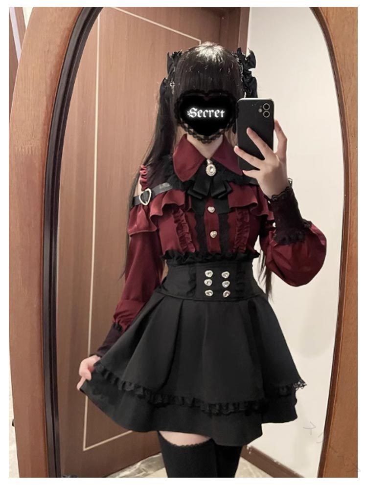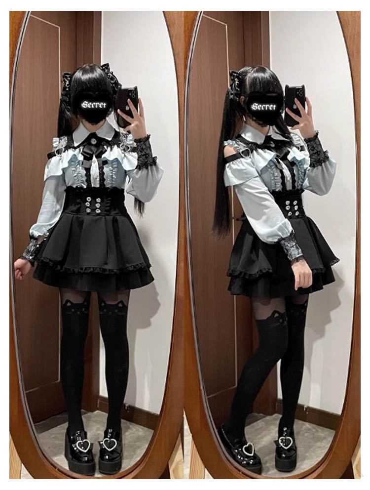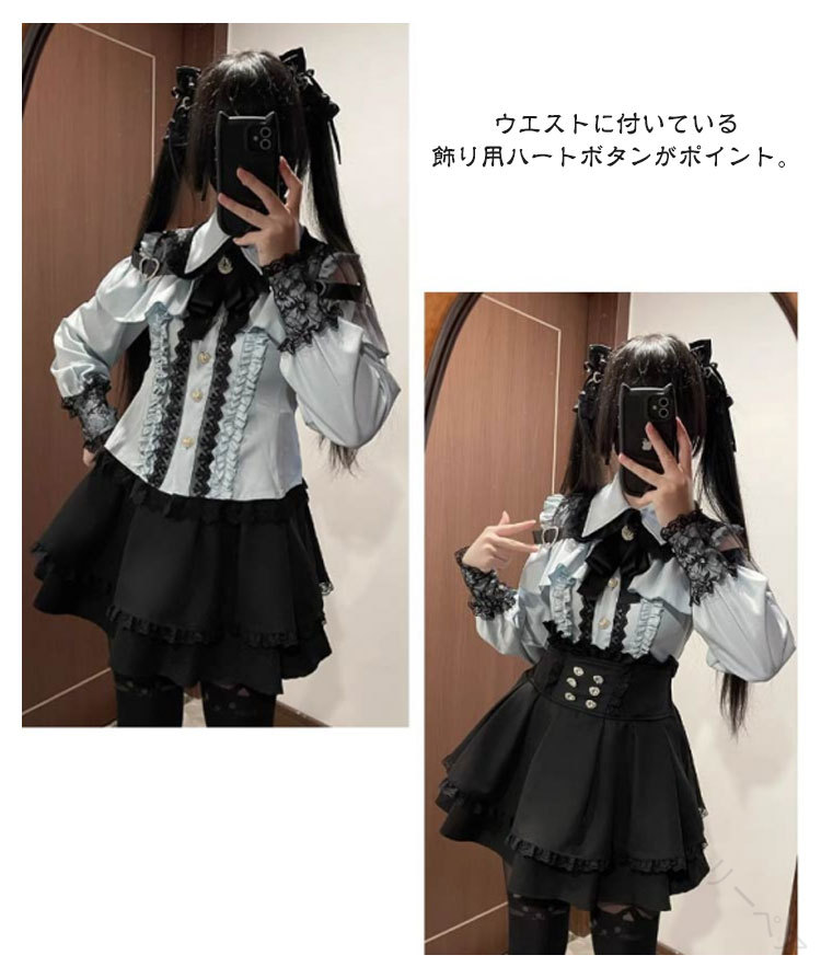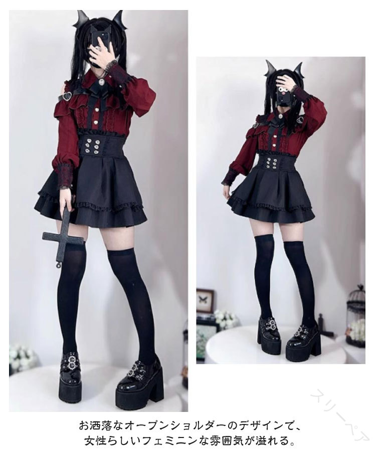 春ワンピース レディース 病みかわ レースデザイン ハートバックル 地雷系コーーデ フリルワンピ 立ち襟スタイル オープンショルダー お姫様系 ギャル服 トレンドアイテム 新作ワ ロリータファッション
