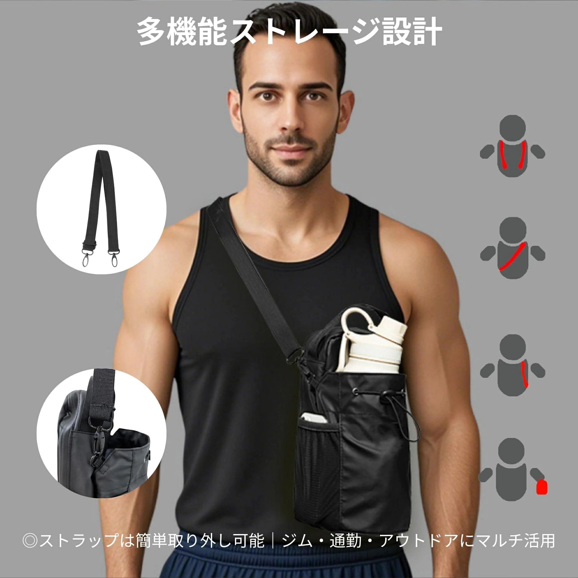 ジムバッグ 小さめ マグネットマグネットジムバッグ,磁気ウォーターボトルホルダー ジム 多種類ボトル対応 防水素 バッグ【超強耐荷重