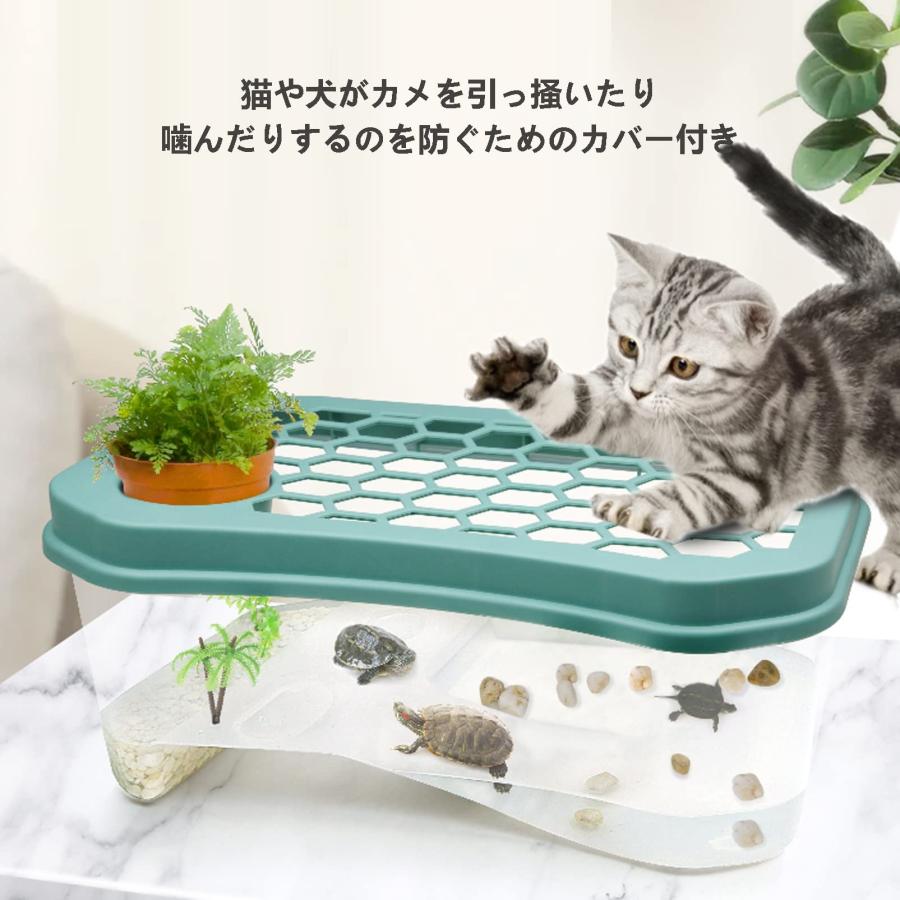 【大きなスペース】: スイミングエリアお食事エリア休憩エリアと8つのエリアがあります。凹凸の付いた斜面で亀が上りやすい設計になっているのも嬉しいポイントです。