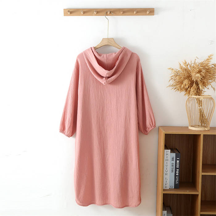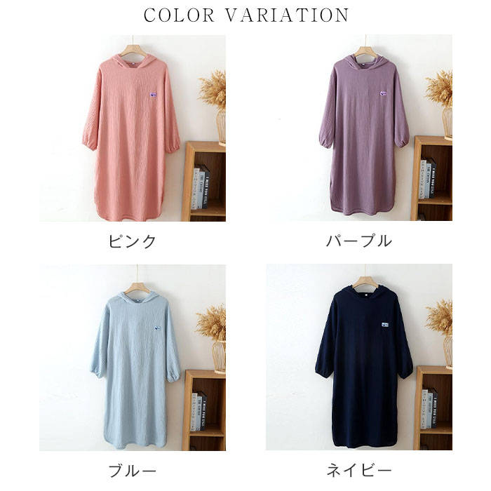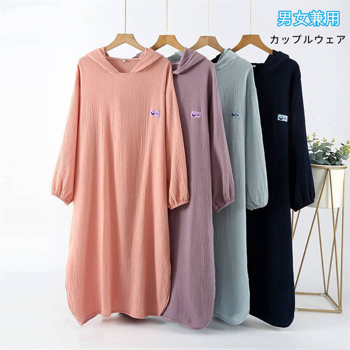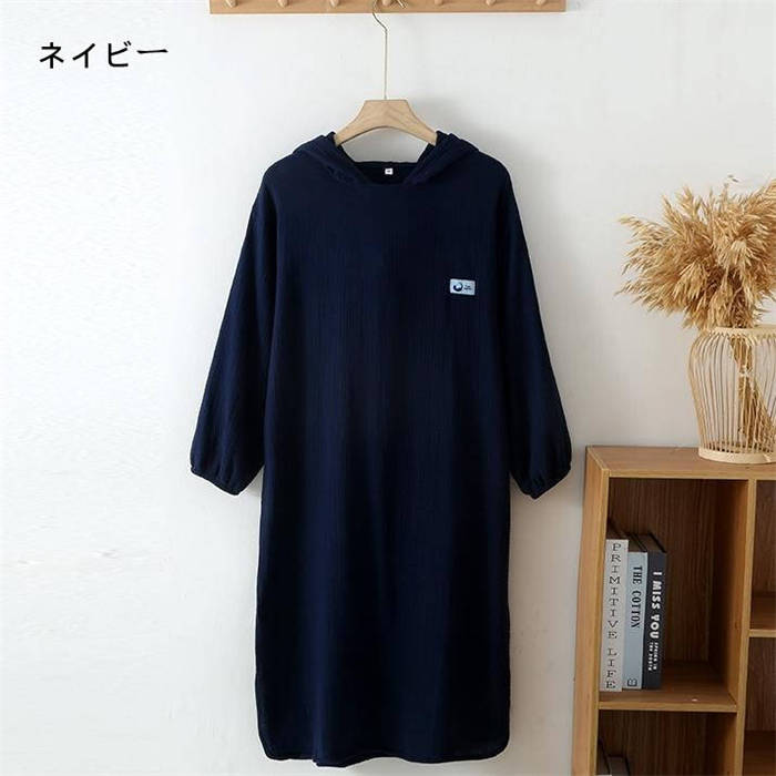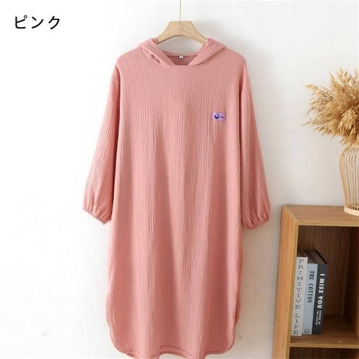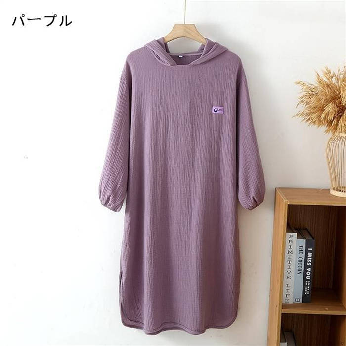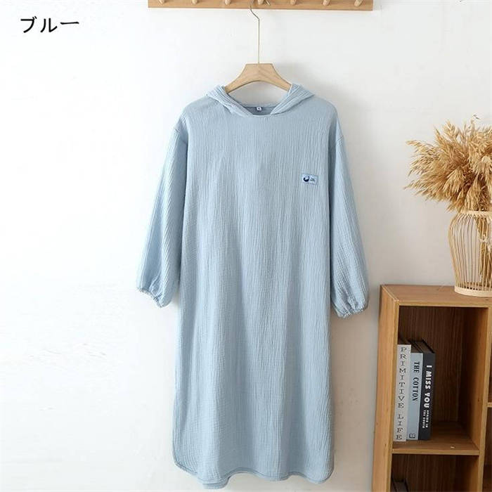 ガーゼ フード付き 綿 ルームウエア ワンピース レディース 新作 ガーゼワンピース 長袖 無地 襟なし ルームワンピース バスローブ 春 夏 秋 プルオーバー 可愛い ゆったり 大きいサイズ お風呂