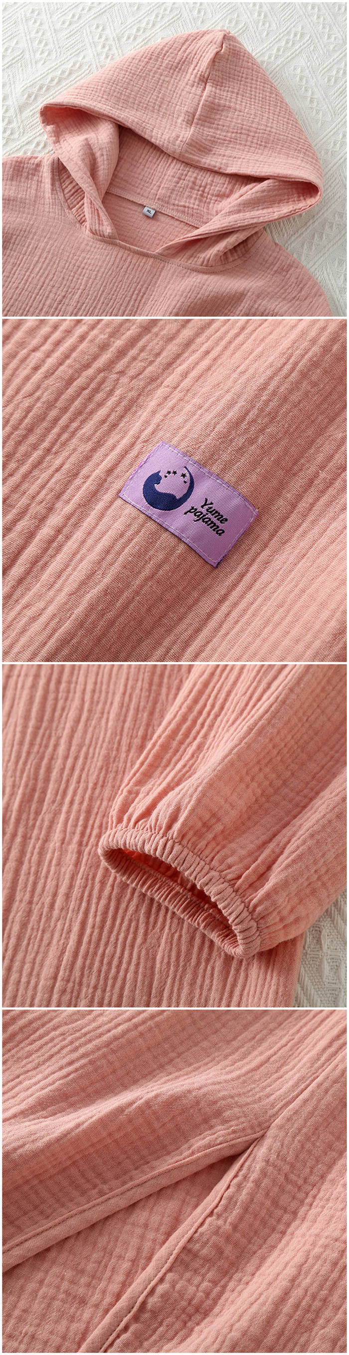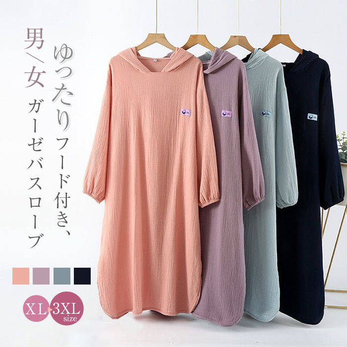 ガーゼ フード付き 綿 ルームウエア ピンク パープル ブルー ネイビー XL 2XL 3XL