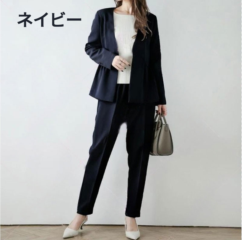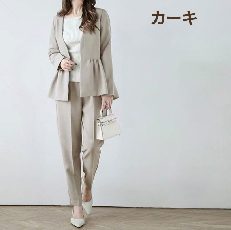 ママスーツ 母 レディース 洗える パ スーツ セットアップ パンツスーツ 特集 カーキ ネイビー S M L