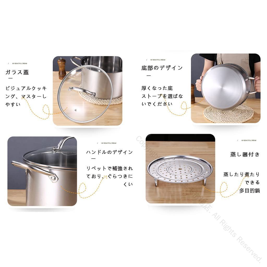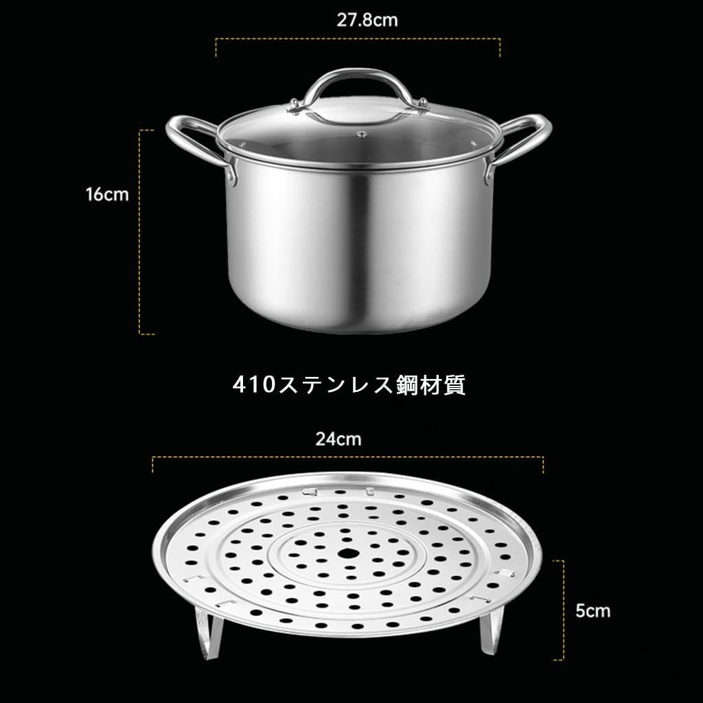 鍋セット ih対応 両手鍋 カレー鍋 寸胴鍋 ステンレス製 キャンプ用 大鍋 28cm 卓上鍋 深型 調理器具 オール熱源対応 ガラス蓋 スチームラック付き フッ素加工 カレー 茹で物 ラーメ おでん