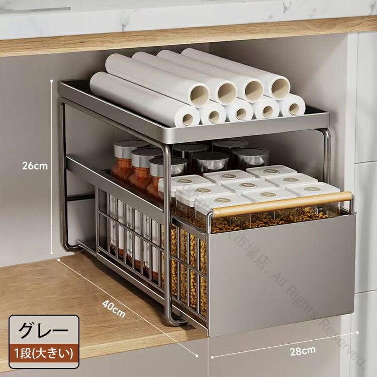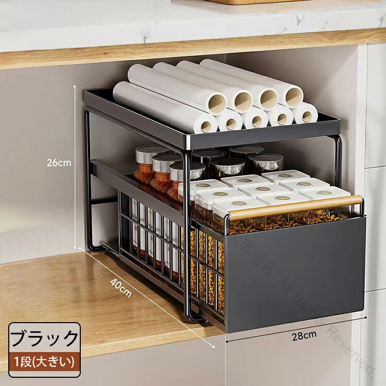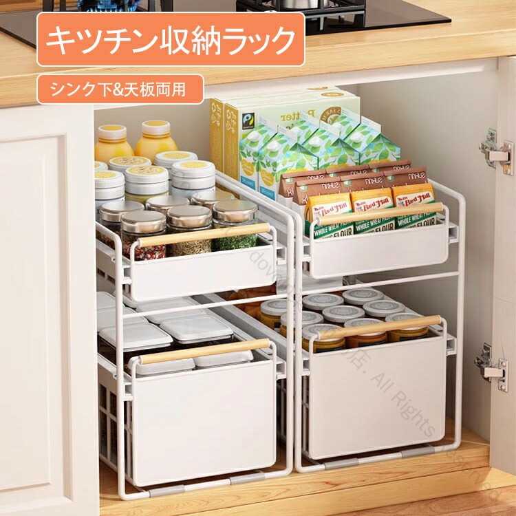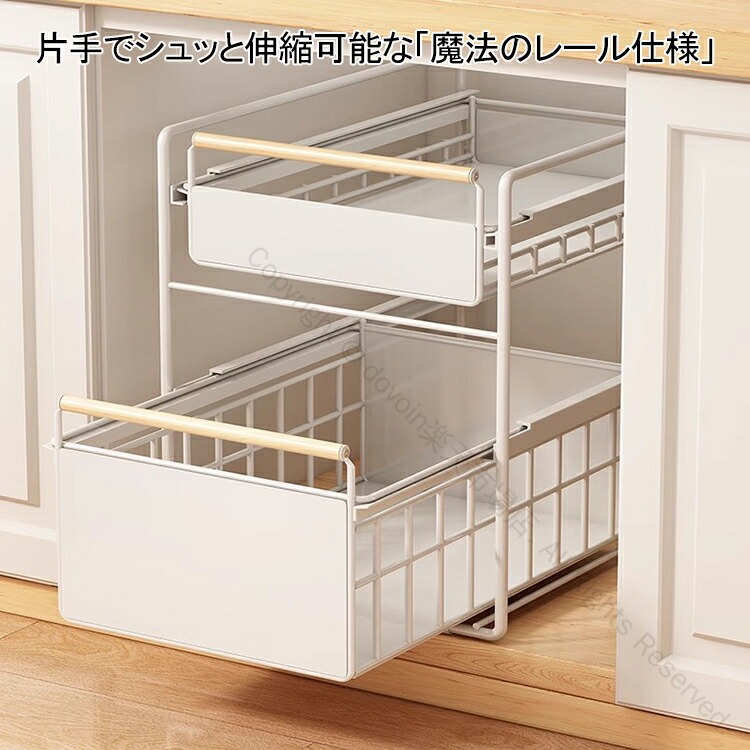 キッチン下収納 シンク下 スライド収納 スムーズな引き出し 深型スライドラック 保存ラック 収納バスケット 伸縮ラック 1段 2段 大容量収納 調味料収納 洗面台下 食器収納 収納棚 台所収 流し台下