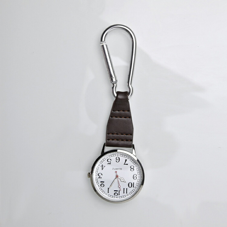バッグやベルトにワンタッチで取り付けられる、いつでもすぐに時間が確認できるフックウォッチです。