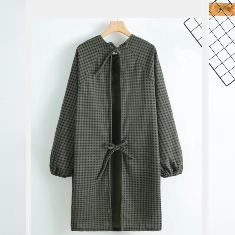 ロング丈仕様で衣類の汚れをしっかり防ぎつつ、体型カバー効果も期待できます。