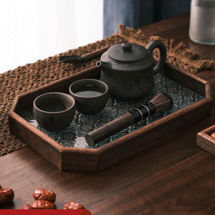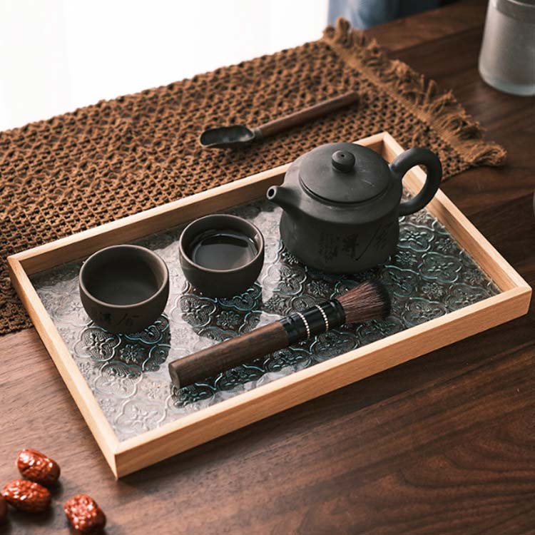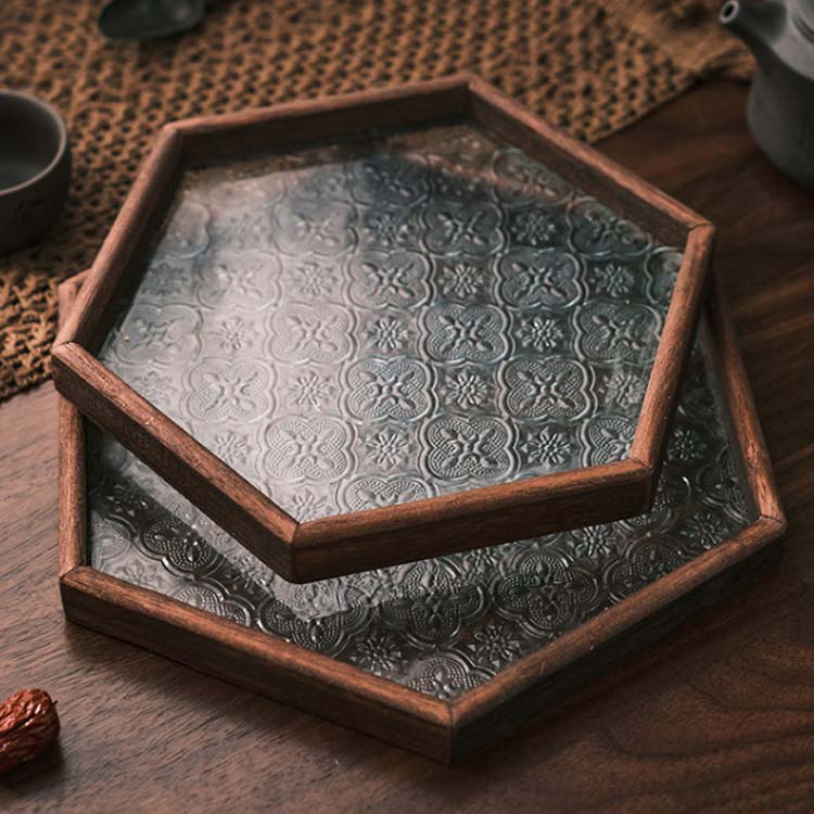 気品あふれるガラスと木製のトレー