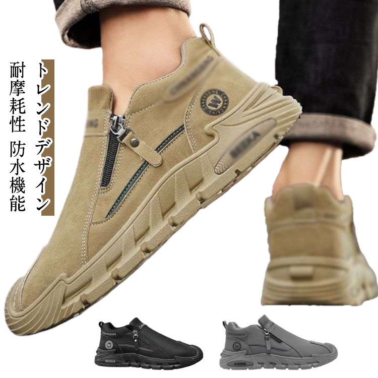 衝撃吸收 軽量 スニーカー 身長アップ ウォーキングシューズ 防水 カジュアルシューズ メンズ 滑り止め サイドジッパー ハイカット 紐なし 通気 耐磨耗 登山 ワークブー 通勤