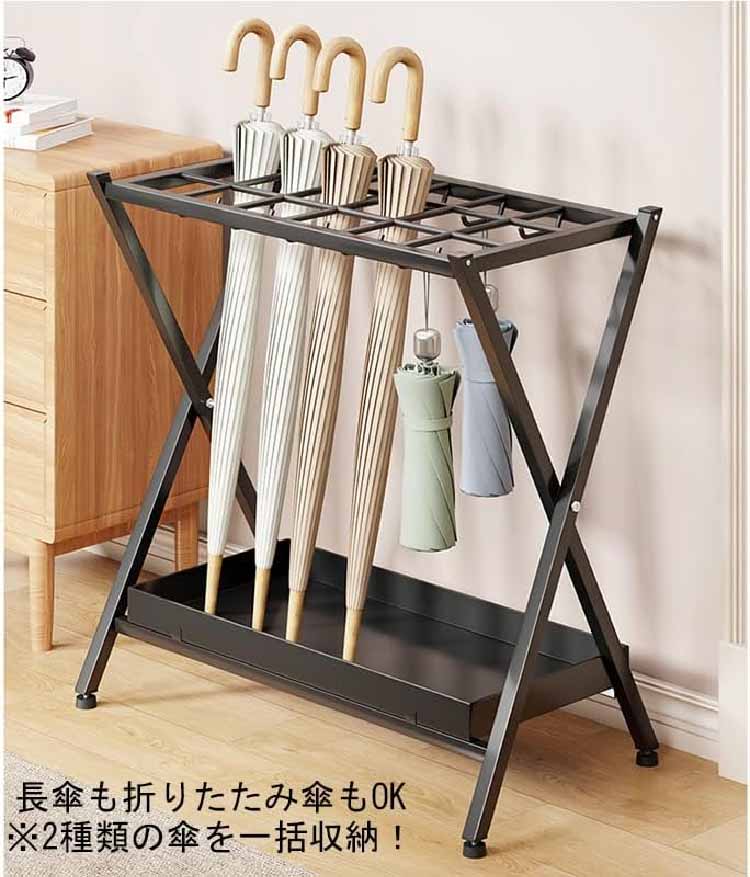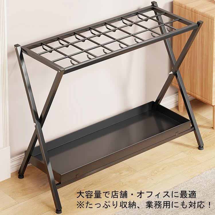 傘立て 業務用 大容量 折りたたみ式 ブラック かさたて 玄関 おしゃれ 傘だて オフィス 店舗用 水受け皿付き W53×D28×H56cm ホームドア かさ置き台 商用傘用アスフ 傘収納棚