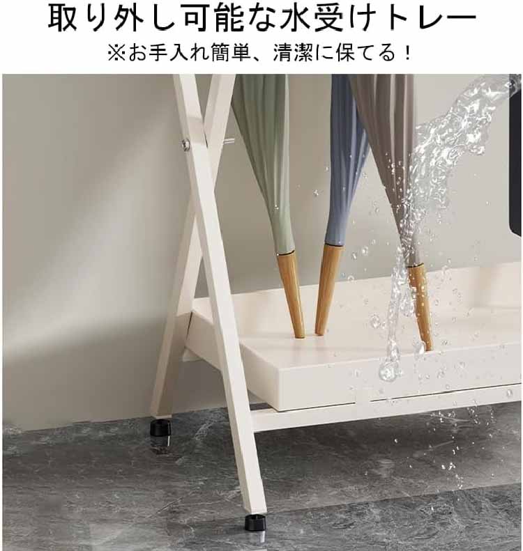 【水滴をしっかりキャッチ、床を乾燥に保つ】 この傘置き 玄関には、便利な取り外し可能な 水盤が付いており、雨で濡れた傘からの水滴をしっかりキャッチ。水が溜まったら、 水盤を簡単に取り外して水を捨て、清掃も楽々です。