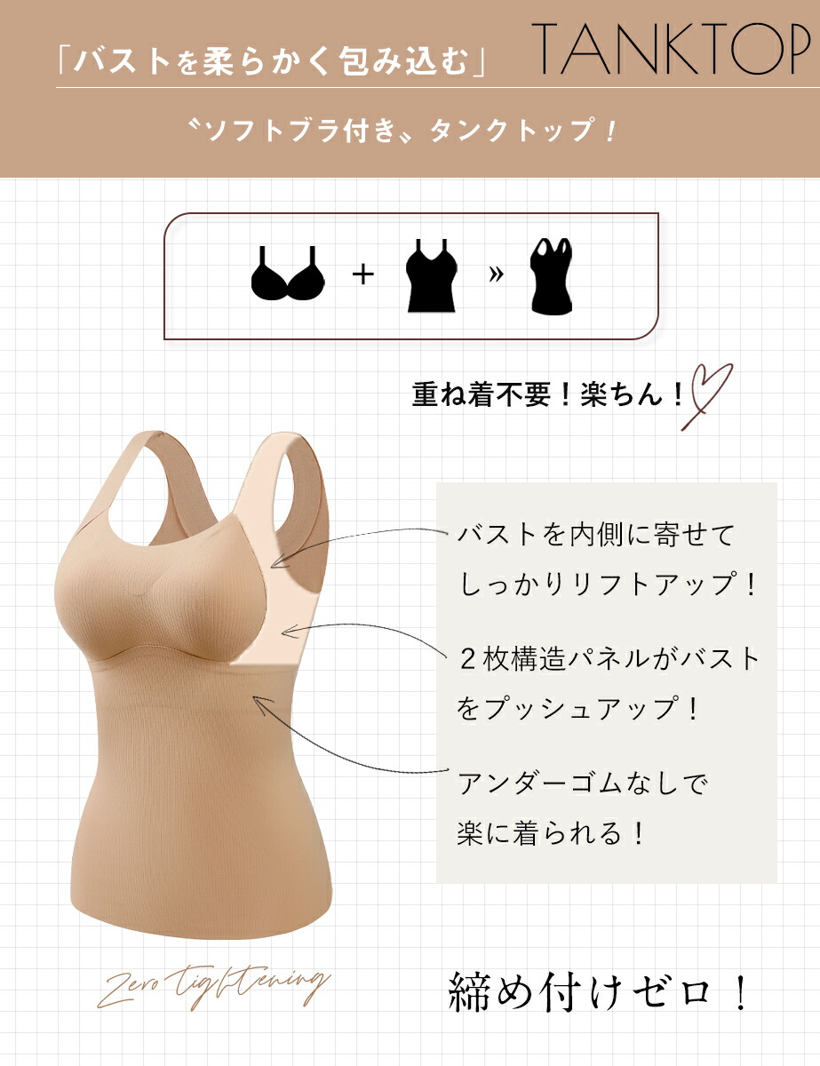 あったかインナー ブラトップ タンクト インナー 下着 ナイトウエア 大人気! ブラウン ミルキーホワイト ブラック M L XL