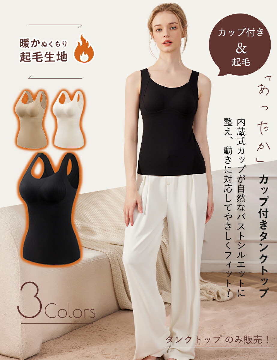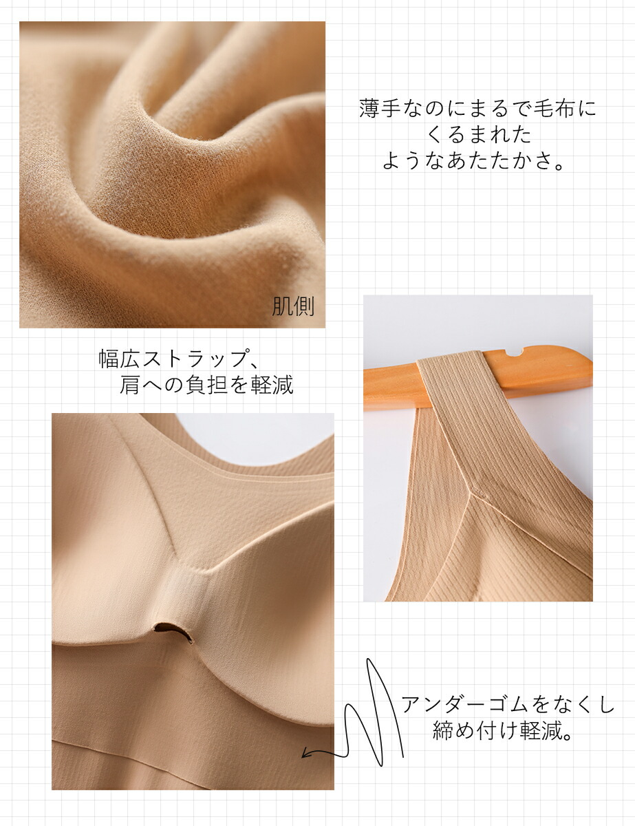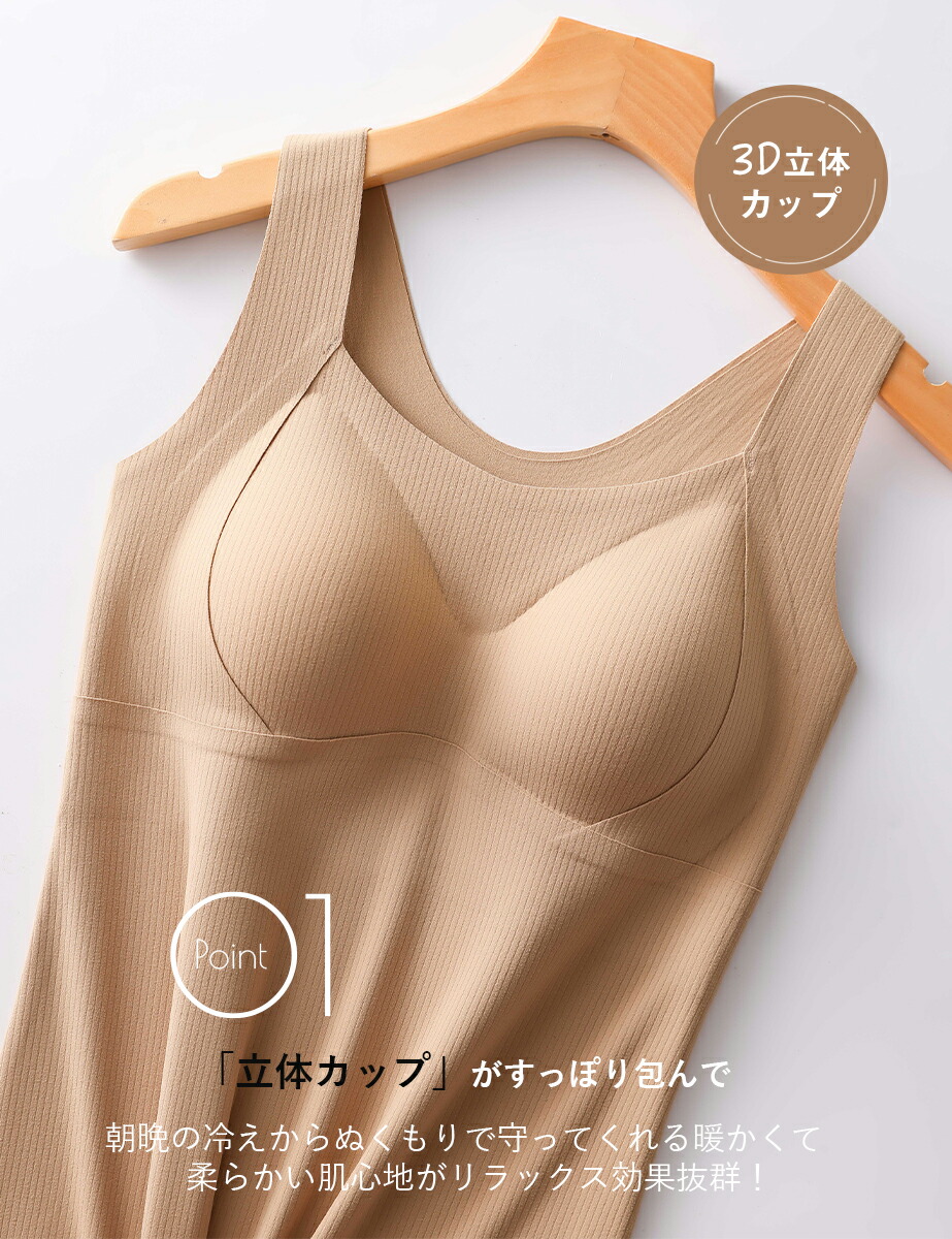 あったかインナー ブラトップ タンクトップ カップ付きタンクトップ ノンワイヤーブラ 暖かブラトップ ホールド力 盛れる カップ付き キャミソール ノンワイヤー 脇高 暖か 夜昼 ナイ 冬