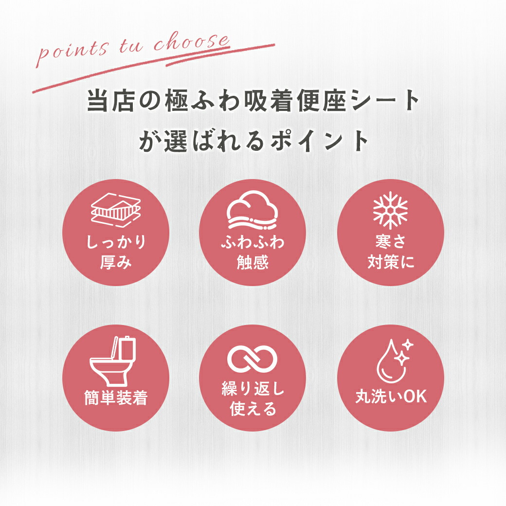 1.毎日のトイレタイムをもっと快適に!ふわふわで厚みのある便座シートは、貼るだけで冷たさを感じさせず、優しい肌触りが持続。冬場の冷えが気になる季節も、暖房便座なしで一日中快適にお過ごしいただけます。