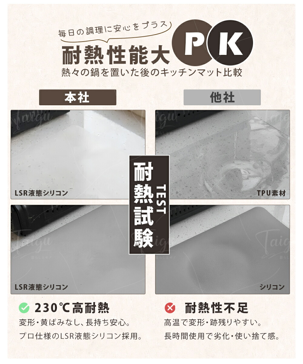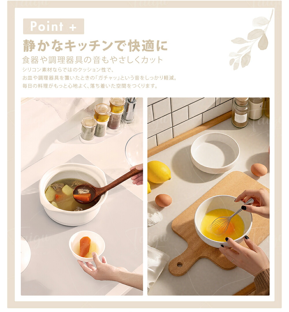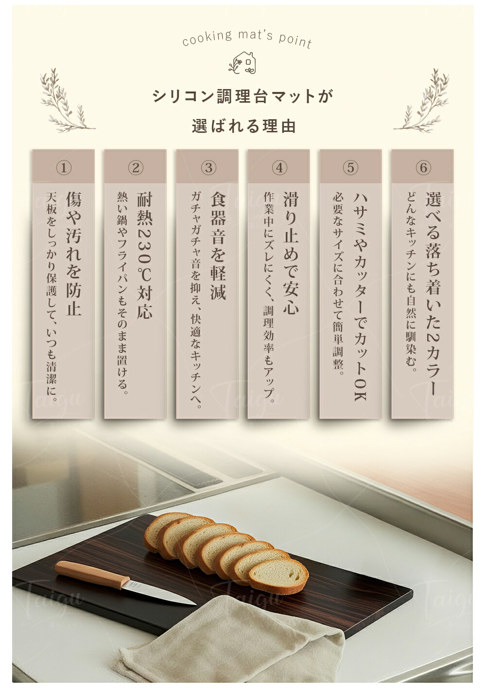 ・調理台とマットの間に水分が入った場合は拭き取り、十分に乾燥させてからご使用ください。