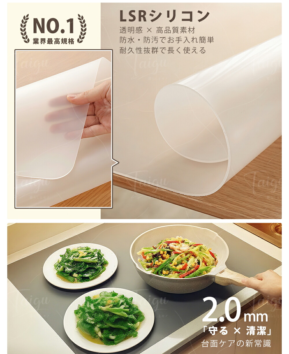 キッチン シリコンマット、耐熱、60cm、80cm、調理台保護マット、透明、拭ける、洗える、シリコンマット お菓子作り、パン作り、便利、吸音、軽量、キッチン収納、キッチン整理、シンクマット、家事時短、おしゃれ、レジン作業台