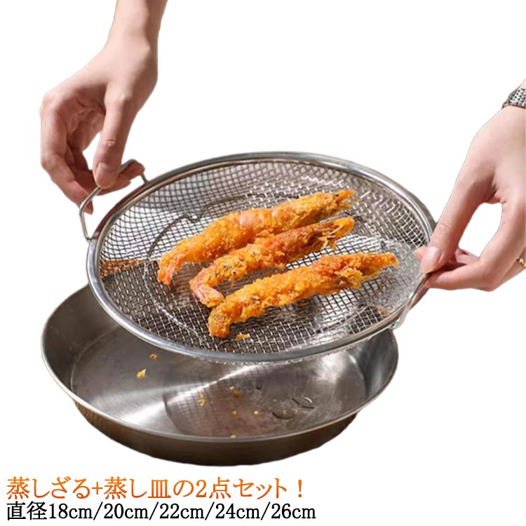 蒸しかご 蒸し皿 ザル 蒸しプレート 揚げ物ざる セット 蒸しざる 食洗機対応 蒸し器 網 ステンレス 2点セット 直径18cm 20cm 22cm 24cm 温野菜 水切り プレ 26cm