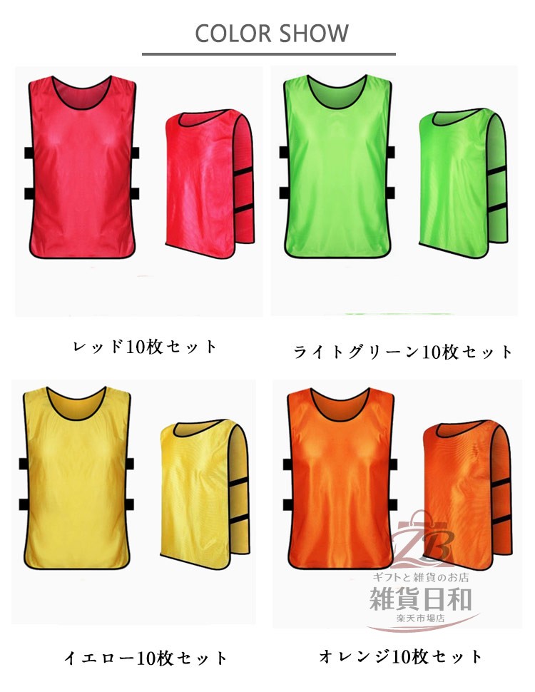 大人用 無地 ビブス 10枚セット 蛍光色 ジュニア スポーツ 練習 チーム分け 運動会 フットサル バスケットボール 学校