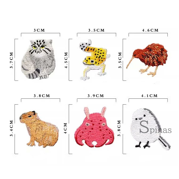 6枚入 アイロンワッペン 可愛いエキゾチックアニマル 高クオリティ 刺繍ワッペン メンダコ マヌルネコ シマエナガ ハシビロコウ ヒョウモントカゲモドキ レオパードゲッコー オ カピバラ
