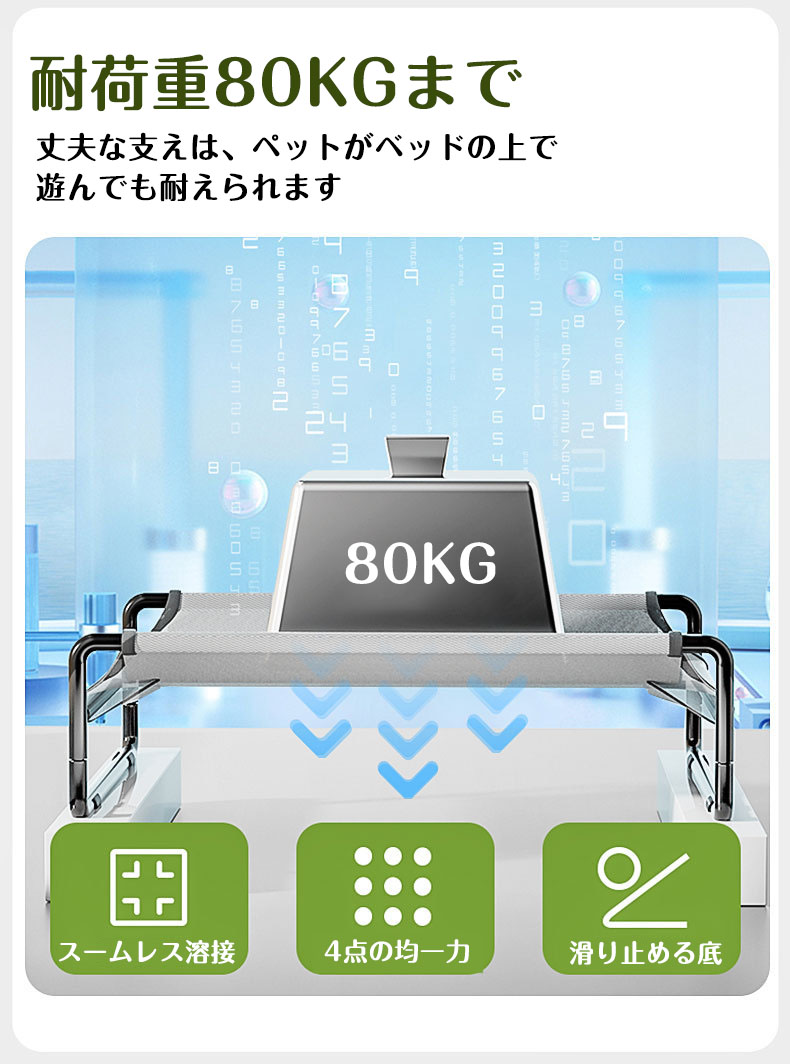 ペットベッド 家庭用 最大80KGまで ベッド 冬 犬 暖かい 犬用 組立簡単 コンパクト ドッグコット コット メッシュ 簡易ベッド 室内 滑り止め 耐久 脚つきコット型 地面から離れ 通気性がいい