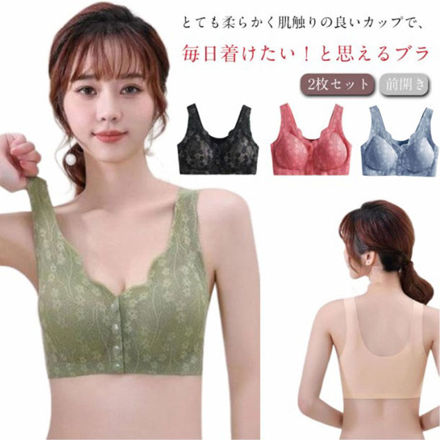 2枚セット 前開き ブラジャー 乳がん 授乳 術後 前開きブラ らくらく 高齢者 前あきブラ フロントホック ノンワイヤーブラ ナイトブラ 下着 女性 マタニティ ブラジ インナー