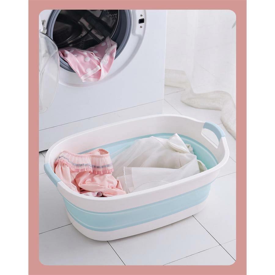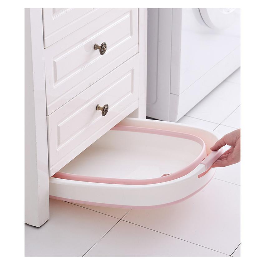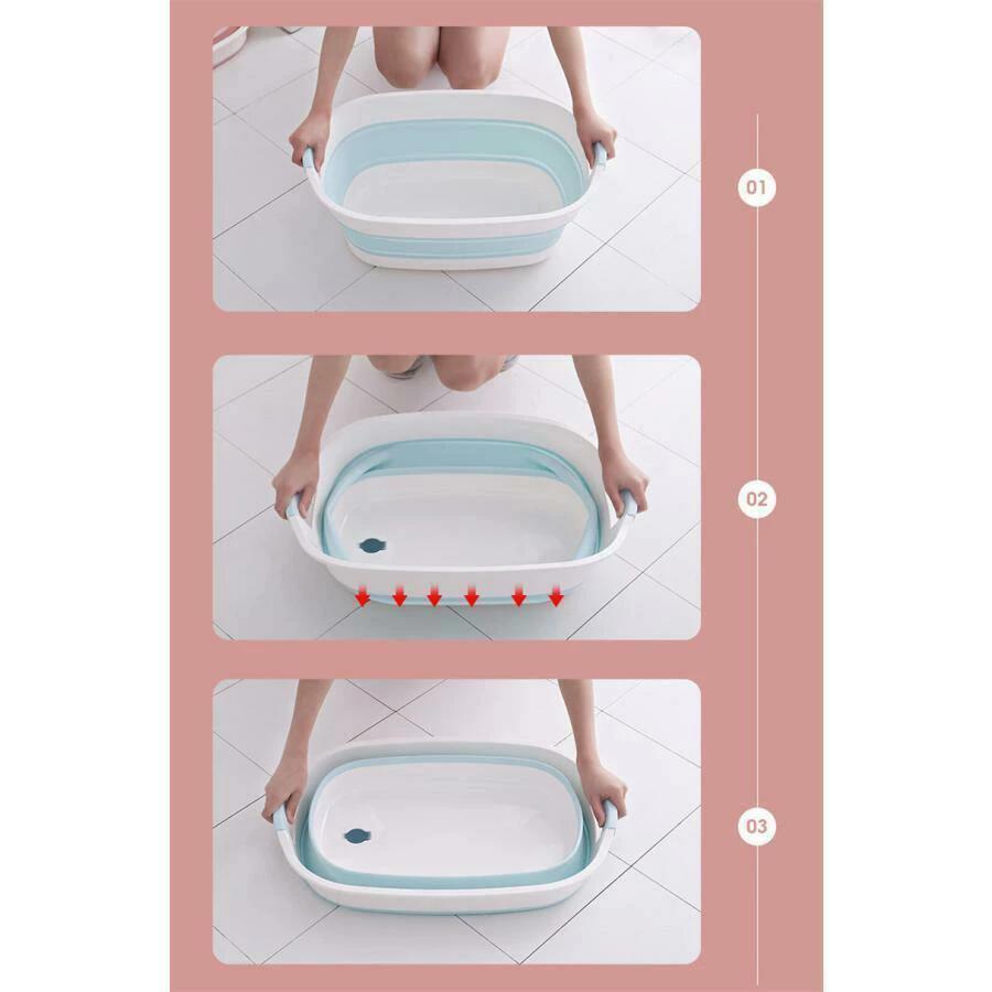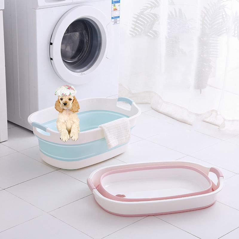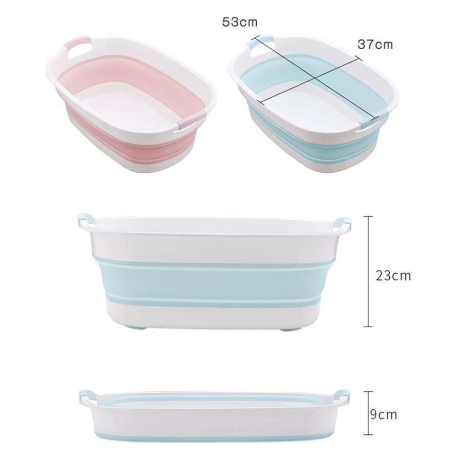 洗濯物の浸け置き用、犬猫のバスタブ、衣類のつけ置き用、赤ちゃんの沐浴用、災害時の断水前に水の蓄え用、収納用、また、ゴミ箱、お部屋の収納には家庭用のよいものだ!キャンピング、旅行のとき、さまざまなものを収納できる。さすがに多機能な洗い桶です。