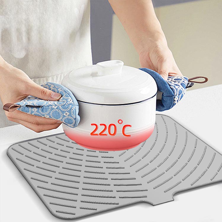 水切りマット シンクマット 食器乾燥マット シリコン製 北欧風 滑り止め付き 防カビ仕様 耐熱鍋敷き兼用 食器皿乾燥 シンク台所用品 シンプル 斜め水切りトレー