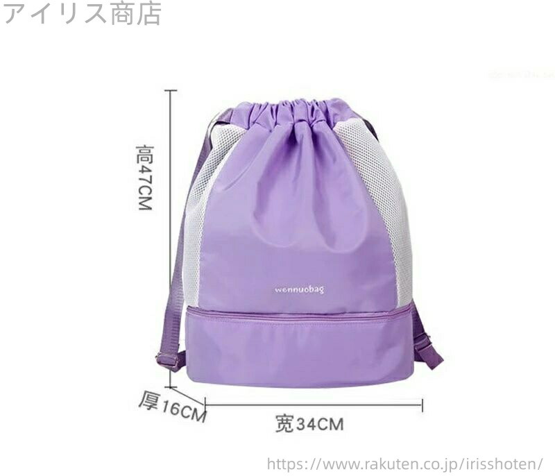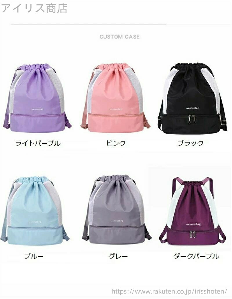 防水ナップサック ジムサック 乾湿分離 キッズ バッグ ランドセル ビーチバッグ プールバッグ 早い者勝ち ライトパープル ピンク ブラック ブルー グレー ダークパープル